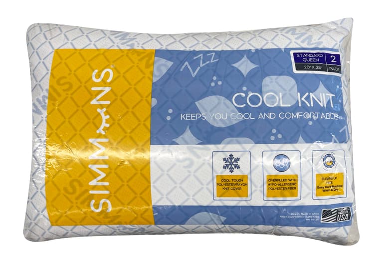 2 pack pillow; Cool Knit; hypoallergenic; plush knit fabric; Simmons; temperature regulating