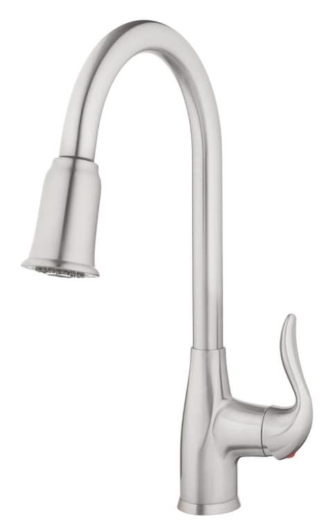 The AquaVista Single-Handle Pull-Down Kitchen Faucet highlights a simple design. The spray head has two modes, full spray and aerated spray, to help with all kinds of cleaning. This faucet has an efficient 1. 8 GPM flow rate with a ceramic disc valve to ensure drip-free performance.Specifications