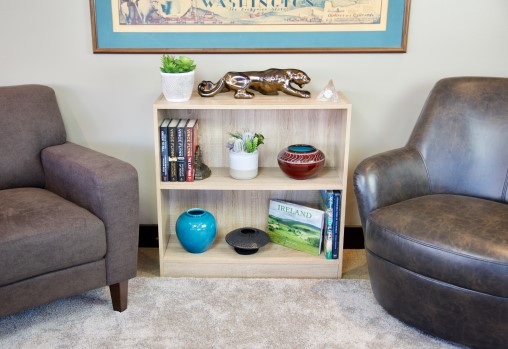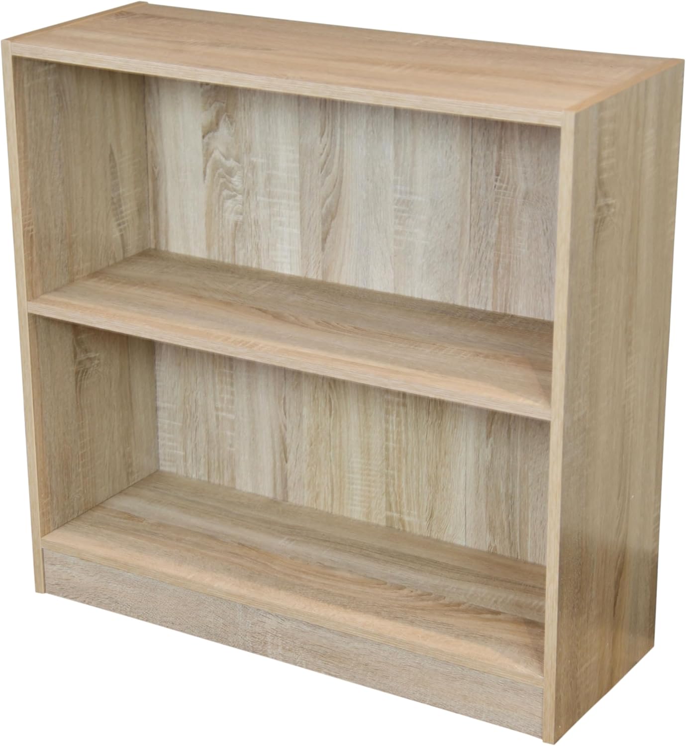 Slide Logic 3 Tier Console Bookcase; No tools no hardware slide together construction; With footer support and back panel; Particle Board w Paper Veneer in Sonoma Oak Finish: Overall Size 31.8"H x 31.5"W x 11.7"DSpecifications