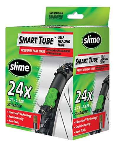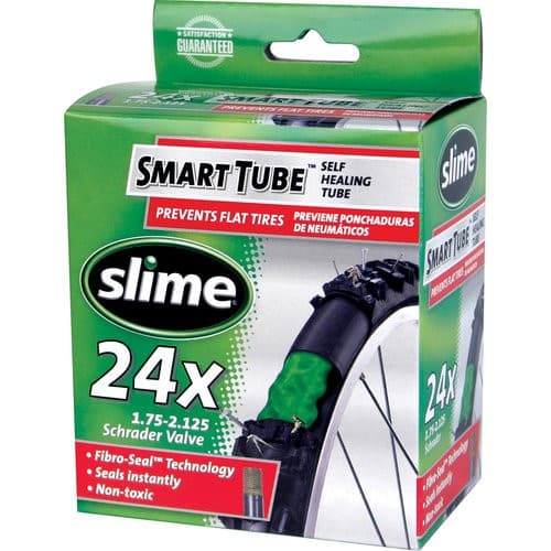 Designed to seal tread area punctures.; Fibro-Seal technology; Fits Tire sizes: 24 x 1.75 - 2.125; Inner tube with Slime tire sealant inside; Install like a standard tube; Non- Toxic; Seals Instantly; Size: 24; Valve Type: Schrader