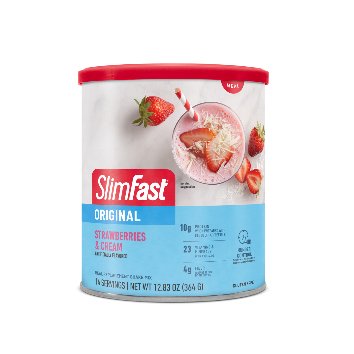 Losing weight is as easy as 1 - 2 - 3 when you activate the SlimFast Plan. One of the essential elements of this clinically proven weight loss program is replacing two daily meals with the great-tasting SlimFast Original Meal Replacement Shake Mix Powder. This meal replacement product that put SlimFast on the map is a great-tasting product that curbs hunger cravings for up to four hours. It contains 200 calories in each 8-fluid ounce serving, giving you plenty of energy to keep your body alert during the day. It is also packed with vitamins, protein, essential minerals, and fiber. This meal replacement shake mix by SlimFast contains 10 grams of protein along with 4 grams of fiber and 24 essential vitamins and minerals that help your body process and burn stored fat, making it easier for you to lose weight.Specifications