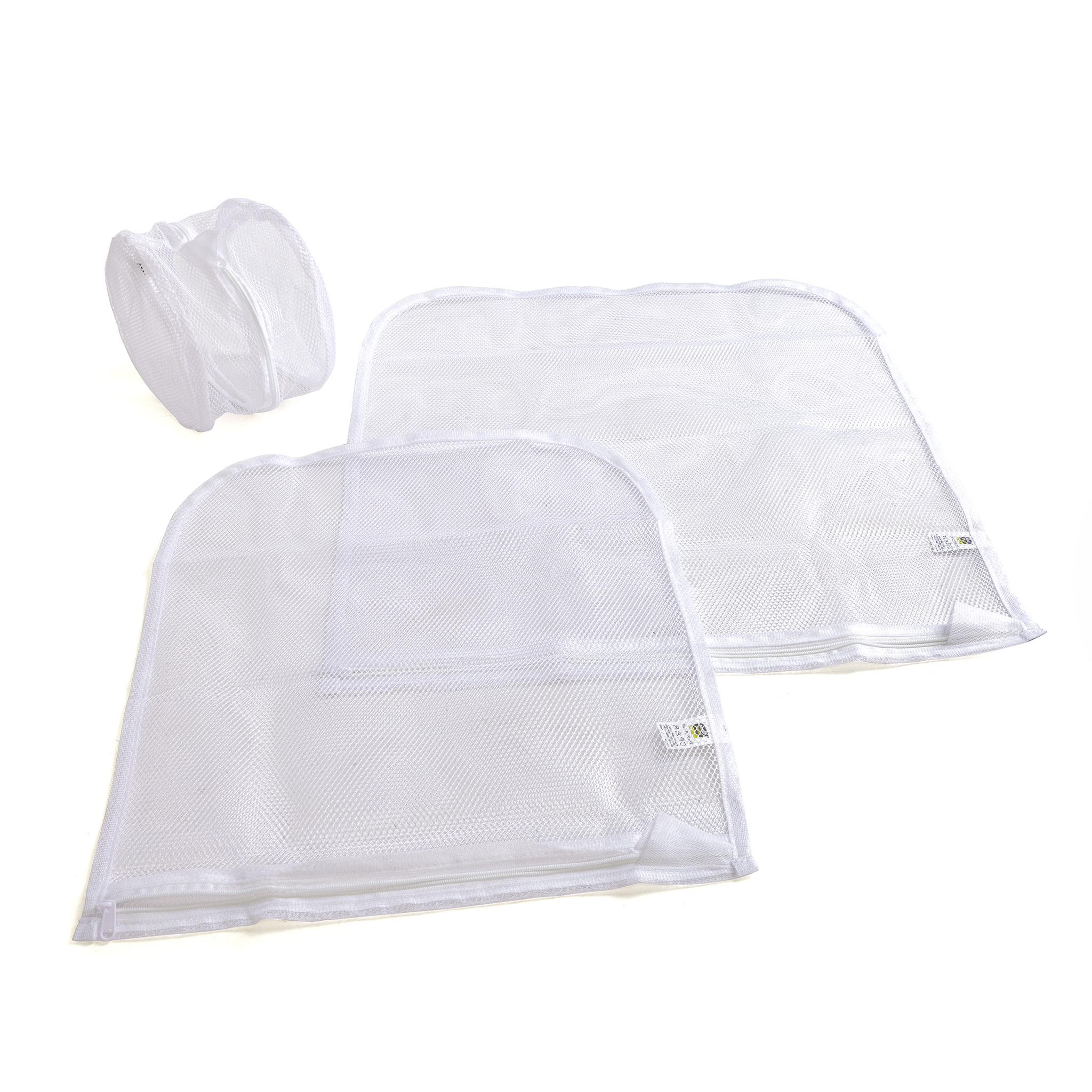 Delicates Wash Bags protect multiple types of delicates in three unique bags. The design allows for constant water flow for quick and even drying. Package Includes The smaller intimates wash bag is great for bras, panties, and other intimates, and 2 reinforced plastic rings reduce wrinkling while washing. The lingerie wash bag is perfect for lingerie and other medium sized delicate items. The sweater wash bag is great for larger delicates, sweaters, and baby items Features and Benefits The durable material allows for constant water flow, making sure all of the clothing is cleaned thoroughly. All bags come with a secure nylon zipper closure and an easy pull zipper ring. Use the convenient hanging loop for drying after wash and storage. Product Specifications Dimensions: 22(L) x 18(W) x 0.1(H) inchesSpecifications
