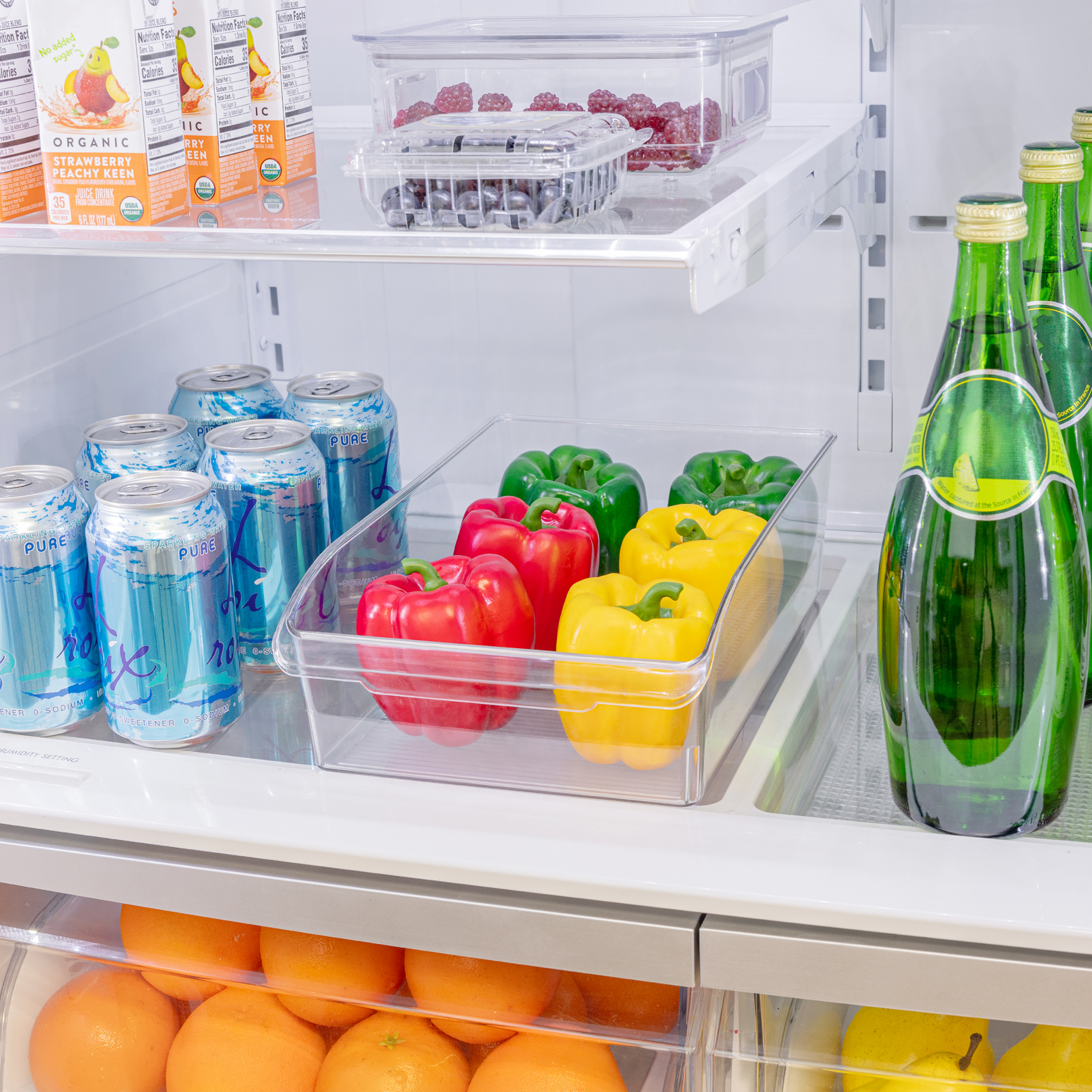 organize your entire refrigerator or pantry with our refrigerator bin with handle. It’s clear for view of contents and easy grip handle.Package Includes Refrigerator Bin with Handle Fits most standard-size refrigerator; measure shelf dimensions for proper fit. Ideal for keeping food fresh in the refrigerator or pantry.Features and Benefits This design is made from BPA-free polyethylene making it refrigerator and freezer safe. The clear design allows for easy visibility of the contents, and it features an easy grip handle.Product Specifications Dimensions: 8 (W) x 12.3 (D) x 3.6 (H) inches Design: Refrigerator Bin with Handle Color: Clear Material: BPA Free PolyethyleneSpecifications