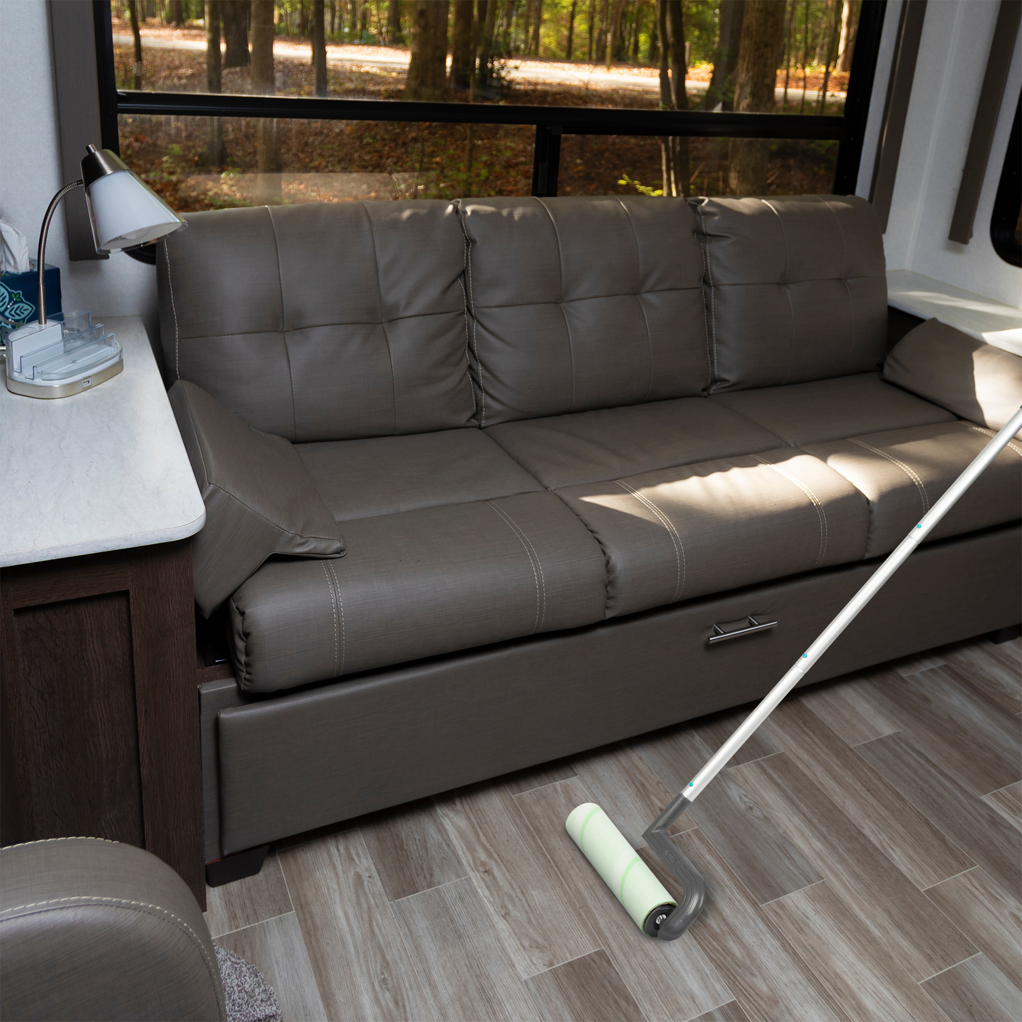 Adjustable height; Converts to hand-held roller with ease; Easy peel perforated tape for a quick cleanup; Instantly & completely removes lint, dust pet hair, and dandruff from clothes, furniture, upholstery, car seats and bedding; Lightweight; Perfect for staircases, floor, rug & hard to reach areas