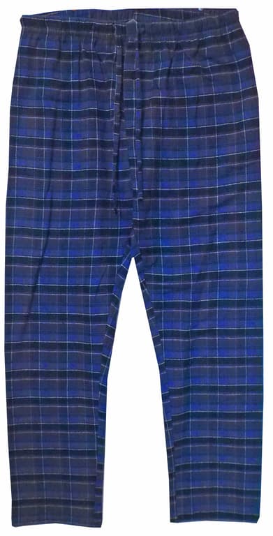 BUTTON FLY FRONT; ELASTIC WAIST WITH DRAWCORD; SIDE ON SEAM POCKETS; YARN DYED PLAID FLANNEL FABRIC