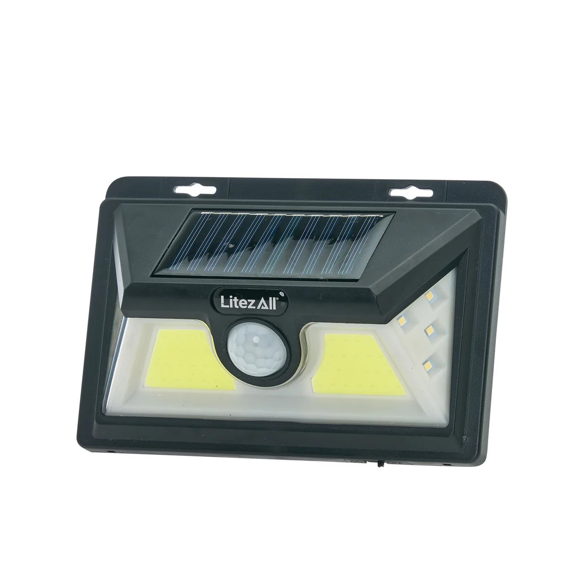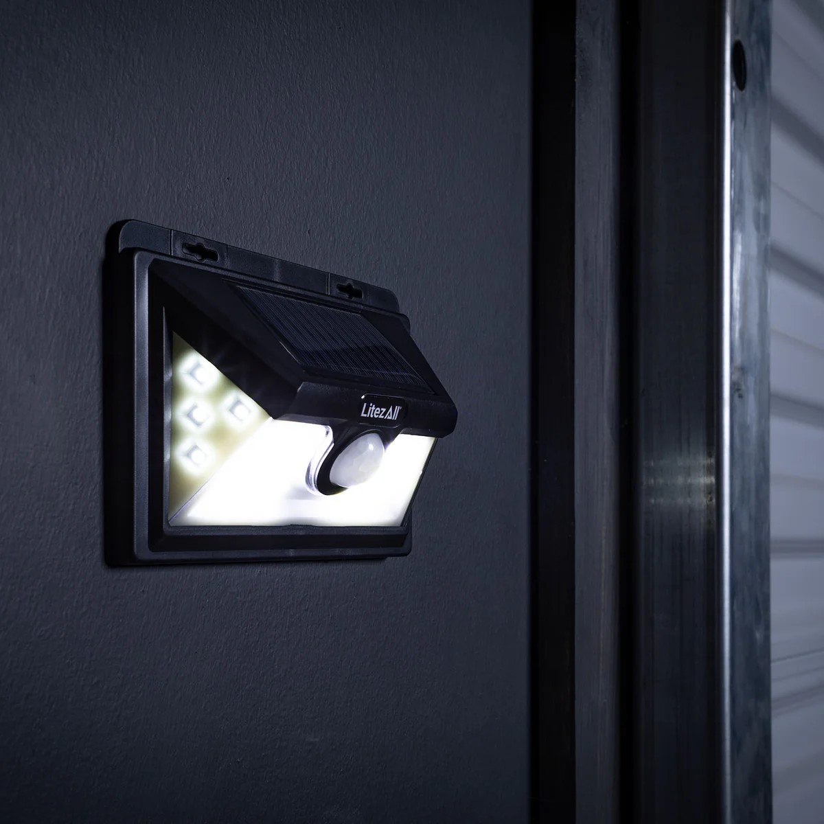 The LitezAll 1500-lumen solar-powered deck light provides motion-activated security lighting. Two modes include high and low brightness with motion sensitivity up to 10 feet. Light shuts off after 20 seconds of no notion detected. Use on deck rails, steps, walkways, over doorways or anywhere bright light is needed. Mounting hardware included for easy installation.Specifications
