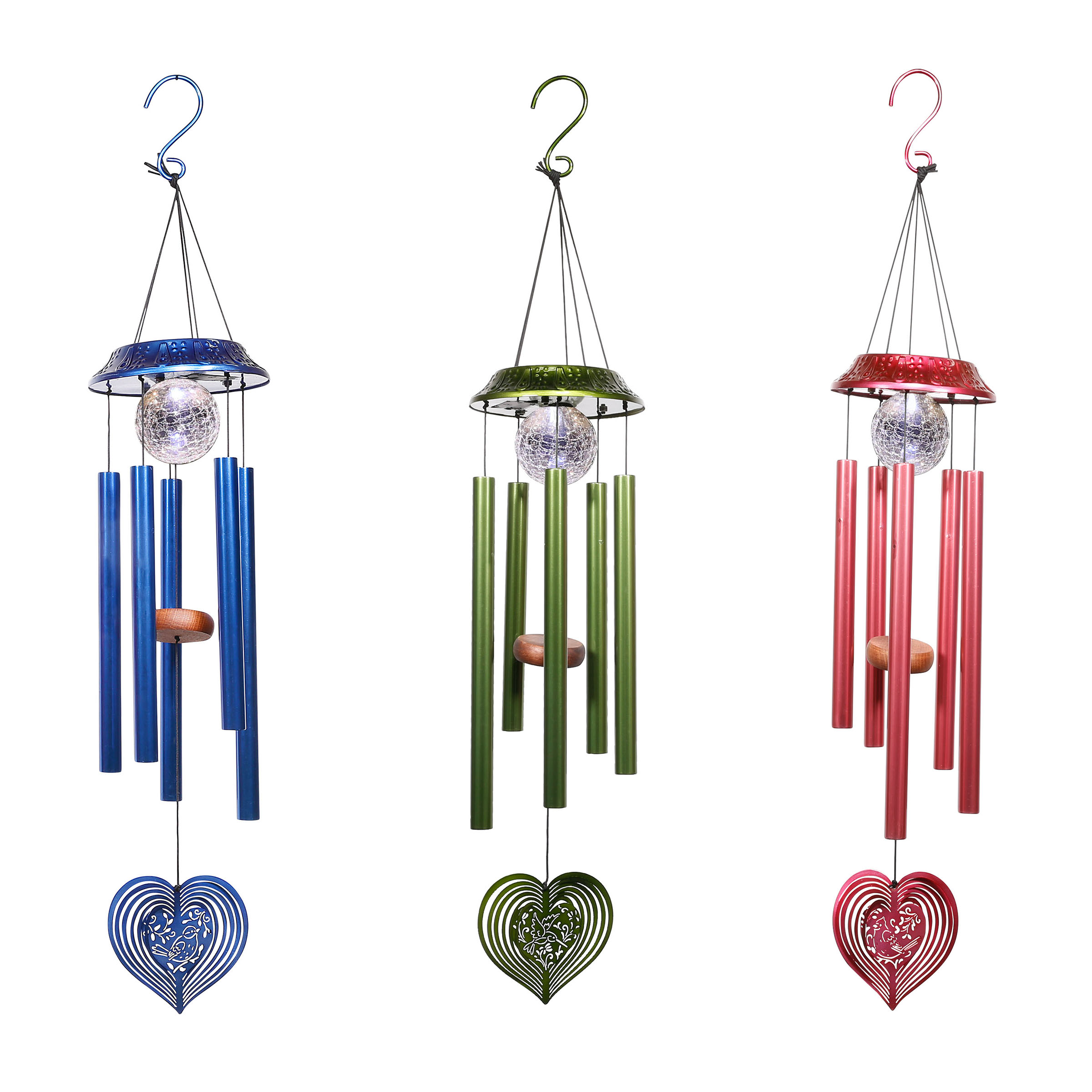 BEAUTIFUL DECOR: The Solar Wind Chime with LED Light adds elegance to any outdoor space. MULTIPLE STYLES & COLORS: Available in Red, Blue, and Green to match your decor. SOLAR-POWERED: Charges by day