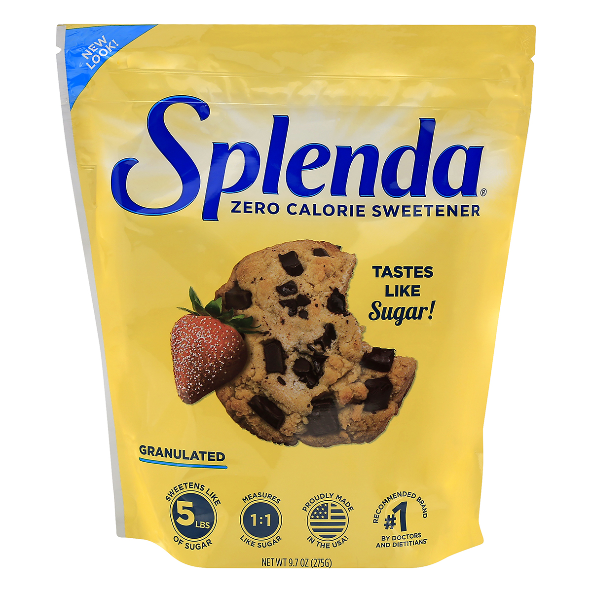 Our Splenda zero-calorie granulated sweetener measures cup-for-cup like sugar, tastes like sugar, and has zero calories. It is a perfect zero-calorie sugar alternative for sweetening all of your favorite recipes, baked goods, and beverages and our 9.7oz granulated sweetener pouch sweetens the same as 5 lbs of granulated sugar!Specifications