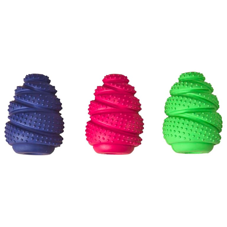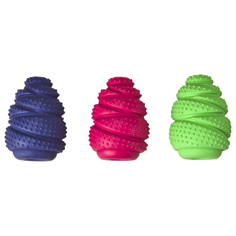 Add treats for a rewarding playtime; Barrett Tough Tornado 4.25"; Groovy, bumpy texture feels good on teeth and gums; Made from durable, all natural rubber; Spirals and curves make it easy to grip, toss and tug