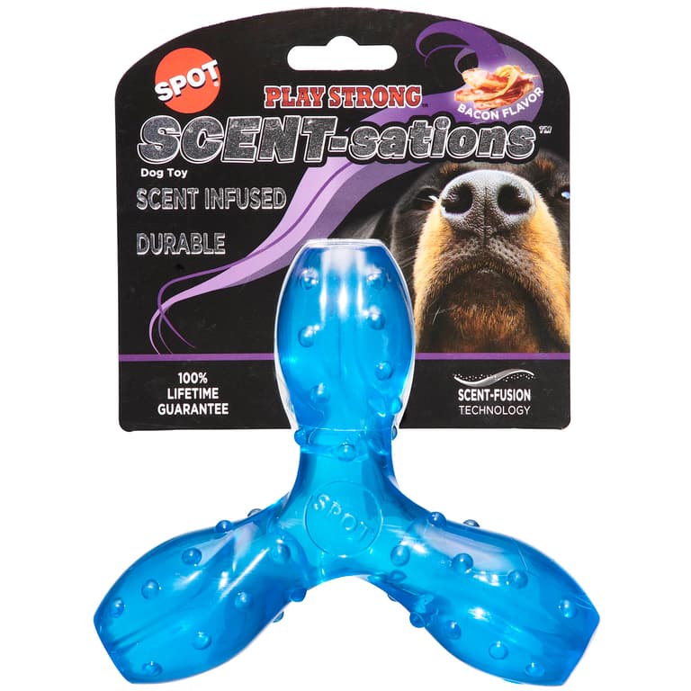 Scent-sations are tailor made to appeal to one of your dogs greatest traits - their keen sense of smell. Our Scent-Fusion Technology combines the scent of bacon with the texture of durable rubber to immerse your dog in the sensation of complete chew and play satisfaction. Nubs massage teeth and gums for a healthy mouth.Specifications