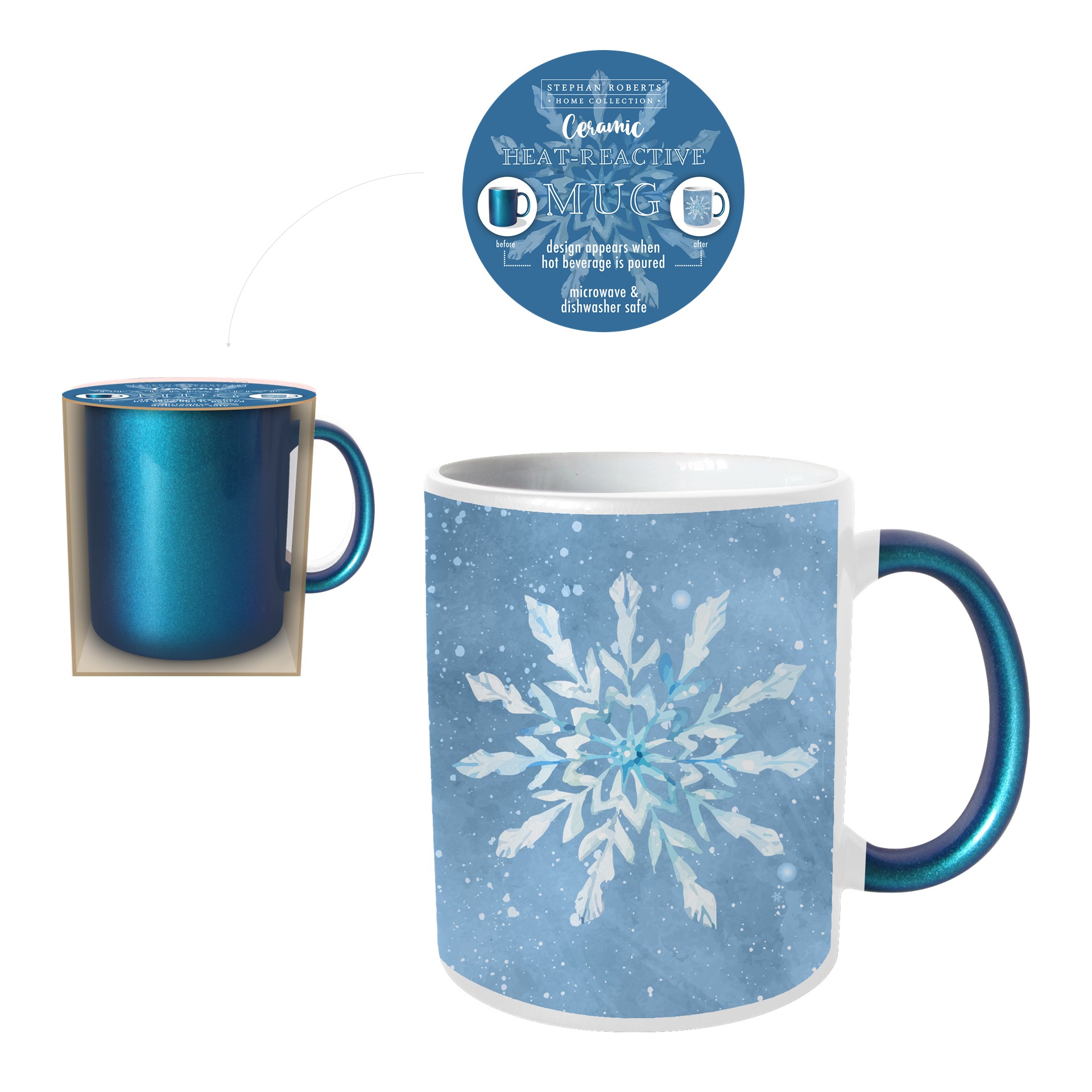 This 20 ounce Stoneware Mug is a perfect gift for the Holidays. The mug is "heat reactive" which makes it unique. When hot liquids are poured into the mug, a "Snowy Chrismas" design appears. This mug will add to the celebrate of the Holidays with a good cup of hot chocolate or a good cup of coffee or tea. When the mug cools, the decoration is no longer visible.Specifications