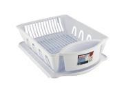 Dish drying set Inclined drain board design allows excess water to flow easily into the sink Includes oversized flatware holders and perimeter cup holders Unique system of channeled grooves that hold dishes securely in place. Sleek styling and functional design combine to make this a dish drainer that is easy on the eye and can handle the towering stack of dishes and pots you just got squeaky clean. This 2 Piece Sink Set includes a dish drainer and drainboard that are attached yet detach easily for cleaning. The inclined drainboard allows access water to flow easily into the sink.Specifications