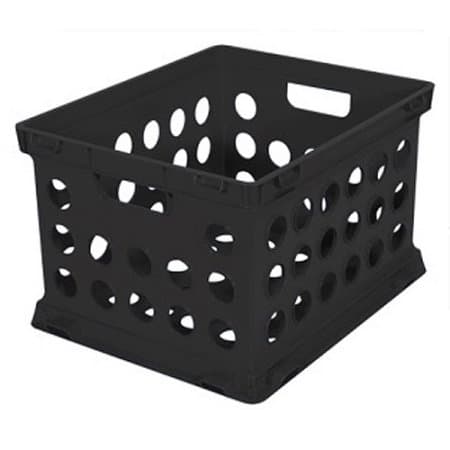Black File Crate. This crates provide the most versatile storage solution. The crate holds letter and legal sized hanging folders for the home office. They contain a unique indexing feature to create a modular system making it ideal for offices kids rooms and college dorms.Specifications