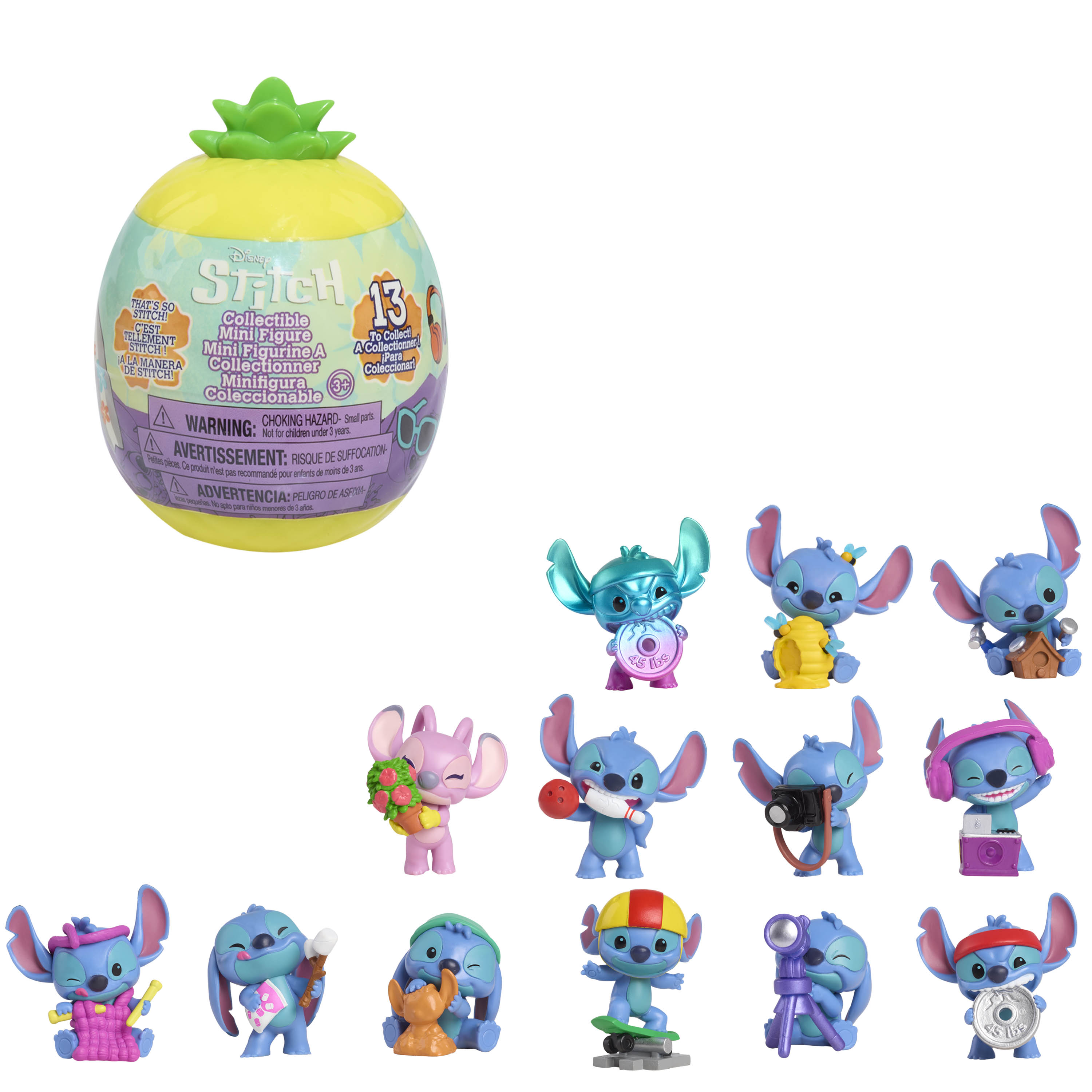 Join Disney Stitch on exciting adventures with the Disney Stitch That’s So Stitch collectible toy figures. Designed for kids 3 and up, these adorable figures let imaginations soar as kids explore Stitch's favorite hobbies. Hidden in colorful, pineapple-shaped blind capsules, each surprise 2-inch figure showcases Stitch or Angel in 1 of 13 fun poses, from gaming and baking to playing soccer, reading, surfing, yoga, and more. These Disney Stitch toy figures are perfect for imaginative play or display, and make delightful party favors or cake toppers. An out-of-this-world surprise awaits Disney Stitch fans as they discover and collect all 13 figures to complete the set. Each sold separately.Specifications