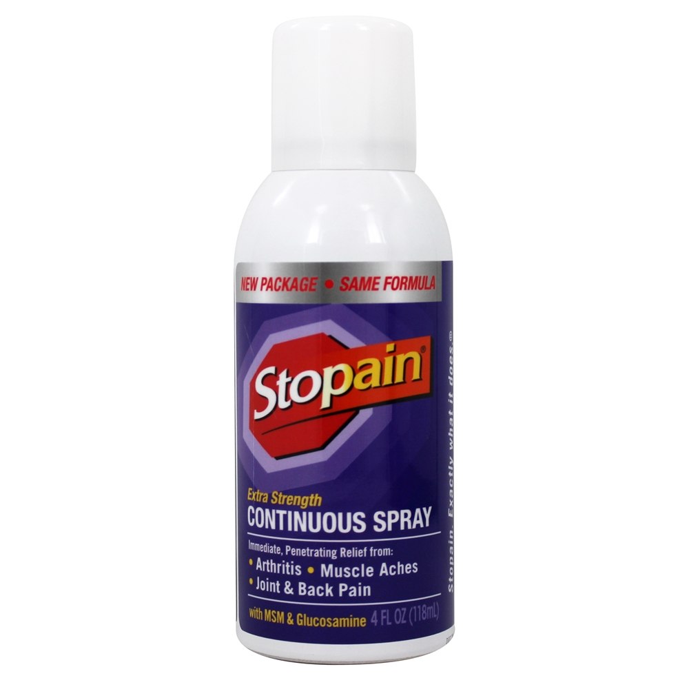 DOES WHAT IT SAYS: Stopain maximum strength products don’t just reduce or dull; our pain relieving spray STOPS your joint, muscle, and arthritis aches and pains fastIMMEDIATE PENETRATING RELIEF: Soothing menthol topical analgesic free from dyes, fragrances, and preservatives, works on contact and is non-staining and non-greasy, non-irritating and non-allergenicPROVEN TESTED INTEGRITY: Made in the USA for 30+ years with the highest quality ingredients, millions of satisfied customers relieved aching muscles, and joints without intolerable heat or icy coldPROFESSIONAL RECOVERY WORKS: Pharmacist and healthcare professional recommended products are easy to use and NSAID free with MSM and Glucosamine to support joint flexibility and mobilityEXTRA STRENGTH FOR YOUR PAIN: Apply our real time pain reliever for sprains, strains, backache, shoulder, knees, hands, wrist or feet; no need for a patch, liniment, cream, hot balm, ointment or iceSpecifications