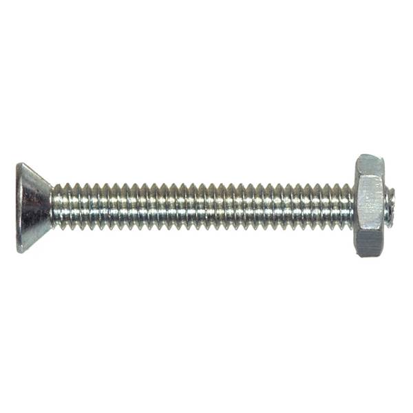 Engineered to fasten metal parts together; Fasten with a screwdriver to reduce the risk of over-tightening; Flat head slotted drive for ease of use; Nut of the same finish and threading is included for proper fit