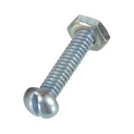 Engineered to fasten metal parts together; Fasten with a screwdriver to reduce the risk of over-tightening; Nut of the same finish and threading is included for proper fit; Round head combination drive for ease of installation