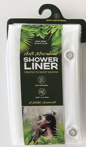 This fast-drying, waterproof shower curtain can be used on its own or paired with a fabric curtain as a shower liner to keep water in the shower and off of your bathroom floors. Made with non-toxic PEVA (polyethylene vinyl acetate) material, this soft-touch shower curtain is PVC-free, chlorine-free, and odorless. It is also mold and mildew resistant for long-lasting durability.Specifications