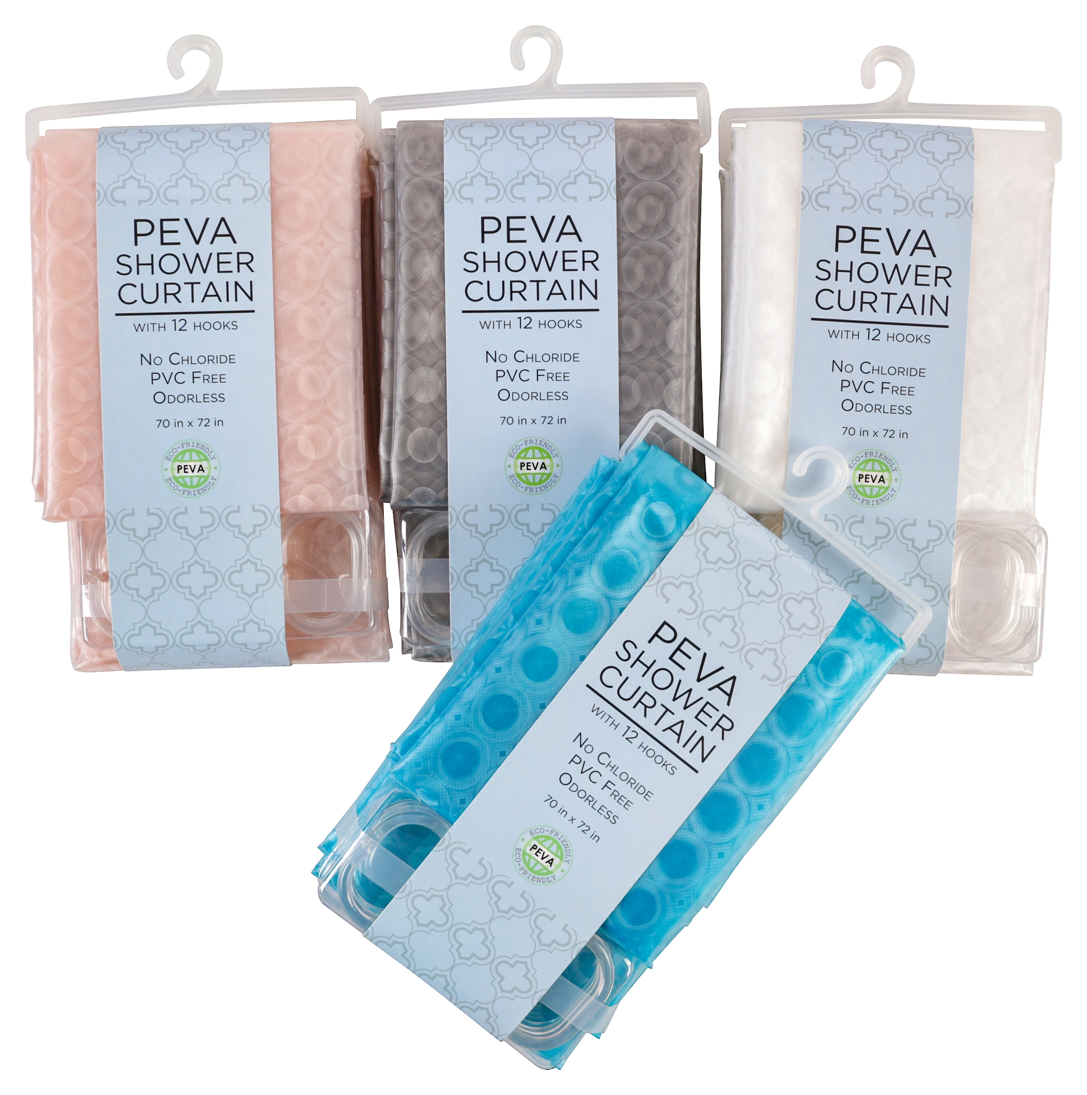COLOR NOT GUARANTEED FOR ONLINE ORDERSFeaturing a waterproof design, the shower curtain and liner set effectively prevent water from escaping the shower area. This helps keep your bathroom floor dry and minimizes water damage. Set includes 12 hooksSpecifications
