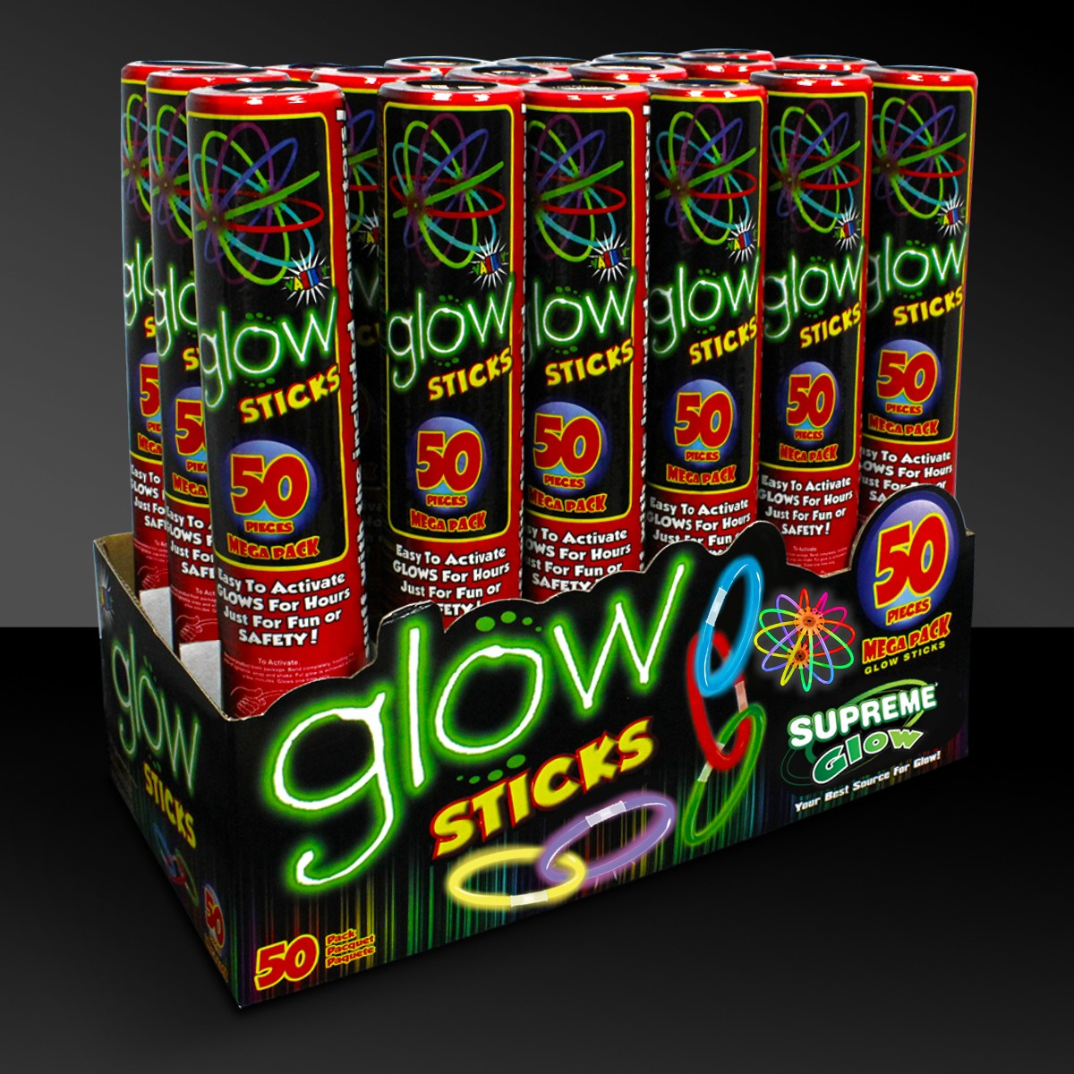Grab some glow on the go! Our fun and easy to use glow bracelets come in brightly assorted colors in a great looking retail ready tube that you can take anywhere you go! Take them camping, to dance parties and other nighttime events. Simply crack and shake to activate glow then connect to form bracelets or fun shapes for hours of fun! Glow bracelets comes with 10 purple, 10 blue, 10 green, 10 yellow and 10 red glow bracelets and 50 connectors (not attached). Remember, glow bracelets only glows once for up to 10 hours and are a one time use only. Our tube of 50 Assorted Color Glow Bracelets are priced per tube. Please order in increments of 1 tube.Specifications