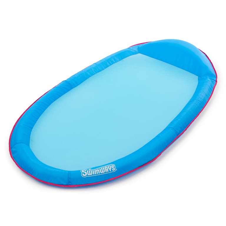 Float through summer with the SwimWays Spring Float Original Pool Lounge Chair. This hammock-style pool float features a soft cooling mesh that keeps your body just below the water's surface to keep you comfortably cool for hours of relaxation and fun on hot summer days. The oversized inflatable pillow supports your head and neck so you can keep your head and hair mostly dry while the cares of everyday life drift away. The patented inner spring around the outside edge of the float provides greater comfort and stability in the water to keep you afloat. Our patent-pending Hyper-Flate Valve minimizes direct contact while maximizing airflow, allowing for easy inflation in a fraction of the time. The unique pump-free design prevents air from escaping between breaths for our fastest and easiest inflation ever, so you have more time to spend in the water doing what you love. Deflate just as quickly by inserting the tail of the valve cap. The bright blue design adds a pop of color and style to your outdoor pool space. This pool float folds down flat into three compact circles and includes a reusable carry bag for easy portability and storage, making it great for trips to the pool or travel. The SwimWays Spring Float Original Pool Lounge Chair measures 68 in x 35 in x 6 in when fully inflated and supports most adults up to 250 lbs.Specifications