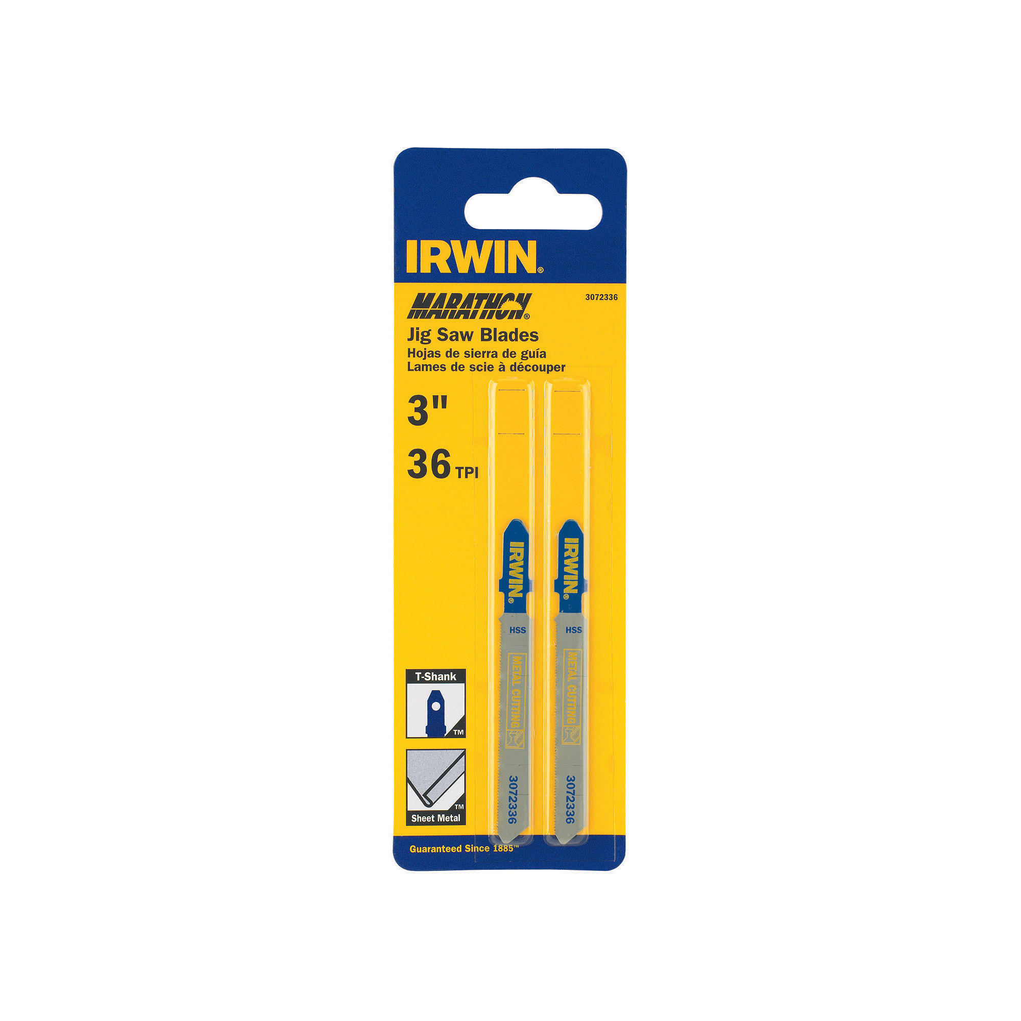 IRWIN T-Shank 3 "36TPI Bi-Metal - a jig saw blade offering fully hardened teeth for cutting ferrous and non-ferrous metals, aluminum, an sheet metal. Features a T-Shank design.Specifications