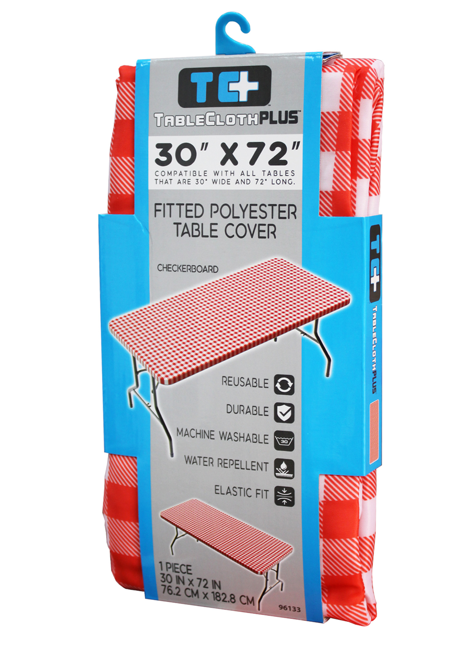 If you are looking for a tablecloth that is stylish, fun, durable, and spill-resistant, look no further than the TC Plus polyester fitted tablecloth. This tablecloth is perfect for any occasion, whether it is a corporate event, a summer picnic, or a backyard barbecue. It has elastic corners for easy set up and a water-resistant fabric that is machine-washable. The tablecloth measures 30 inches by 72 inches and uses a dye sublimation printing method for long-lasting quality. With the Tablecloth Plus polyester fitted tablecloth, you can add a touch of flair and convenience to your next gathering.Specifications
