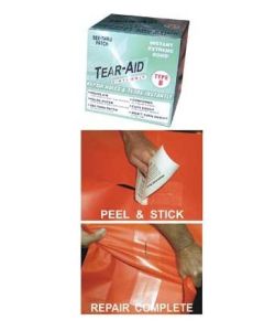 Holds air under pressure even when stretched. See-thru patch works with all colors. Conforms to irregular surfaces. Won't turn gummy in heat. UV resistance inhibits discoloring. Cuts easily with scissors. Won't pull off when stretched. Heat or cold won't break down the adhesive. Type B -20°F to 190°FSpecifications