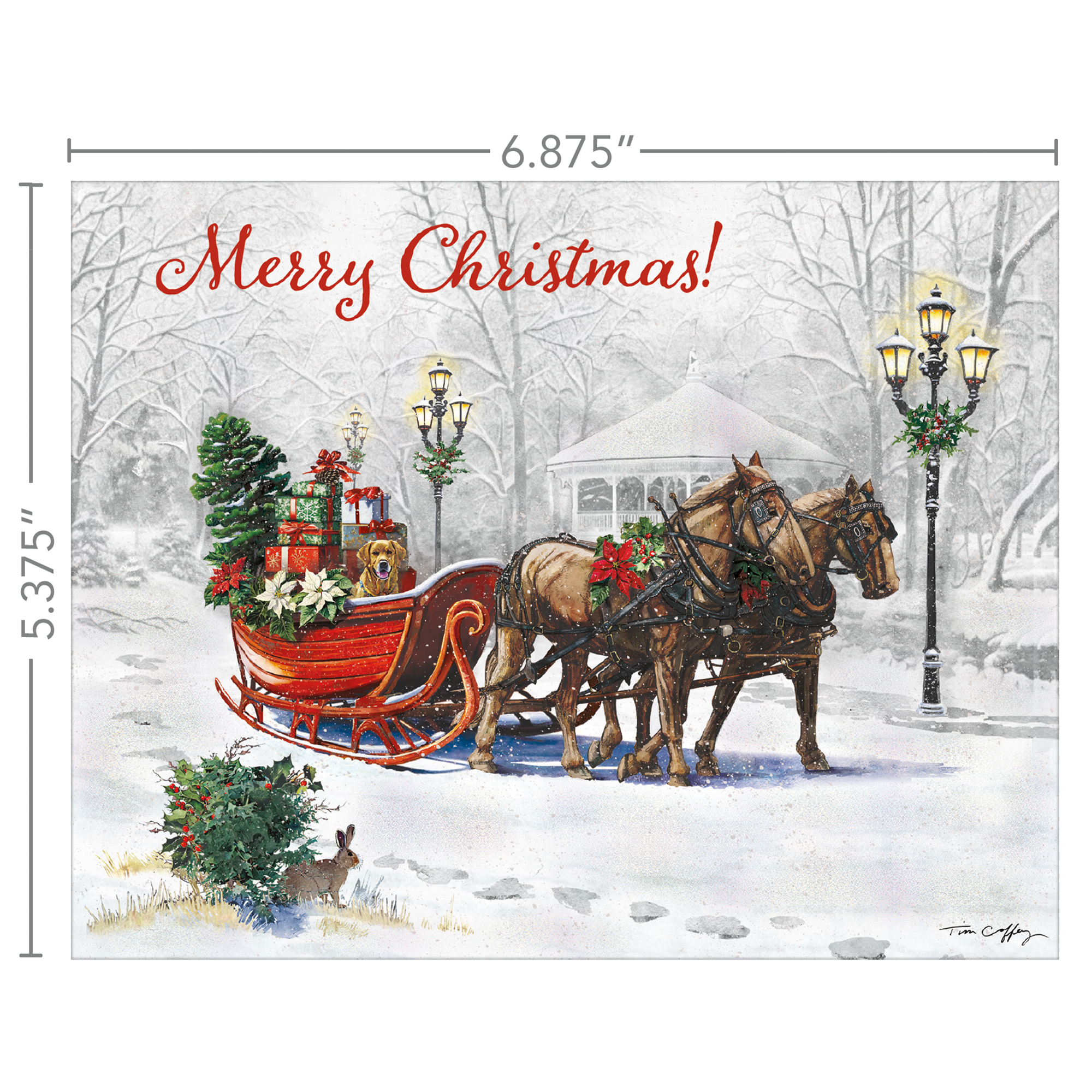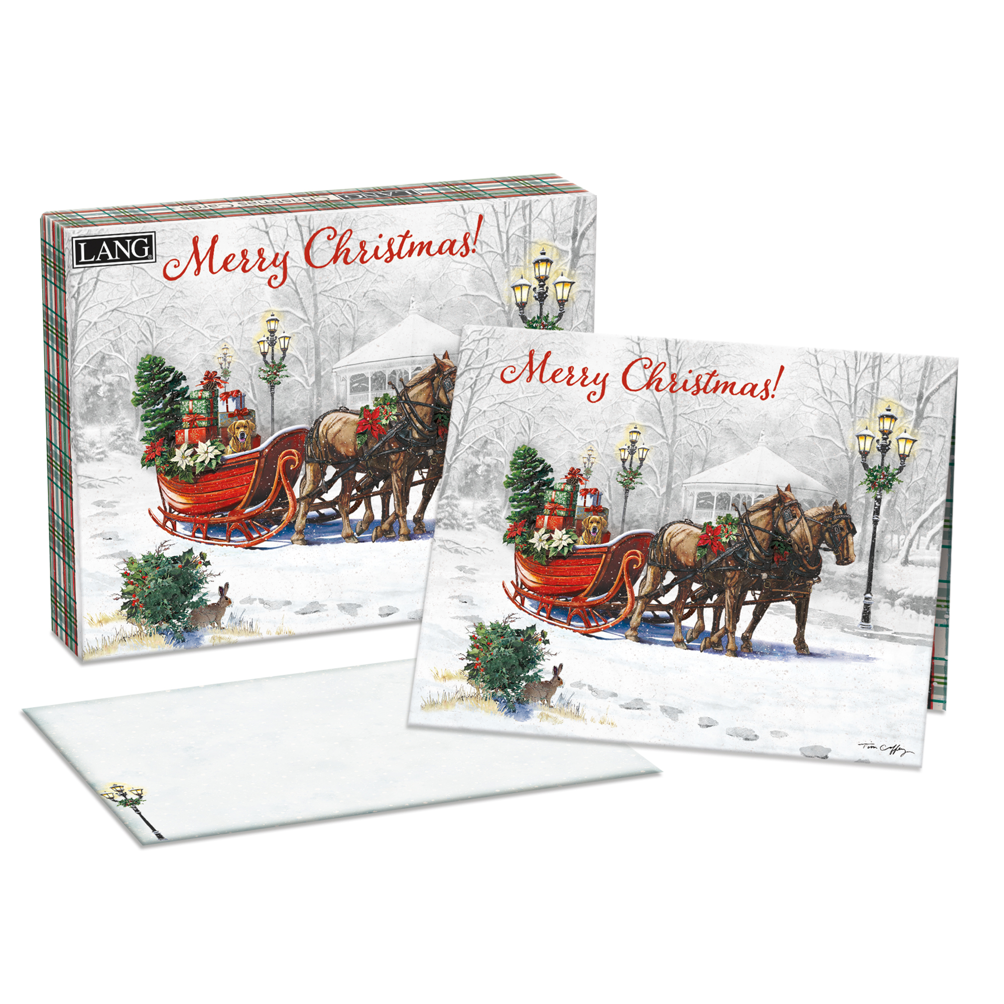 Send season's greetings to your family and friends with Sleigh Bells Ring Boxed Christmas Cards featuring artwork by Tim Coffey! Fill hearts with holiday cheer with cards that combine colorful artwork with holiday greetings inside and out. With LANG quality features like linen embossed paper stock and glitter embellishment, these are a truly special way to connect with loved ones around the holidays!Specifications