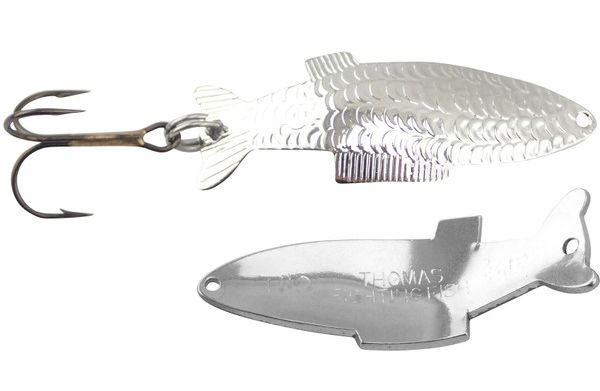 Unique bend and raised "scale" pattern of this spoon create action and flash irresistible to all types of gamefish.Specifications