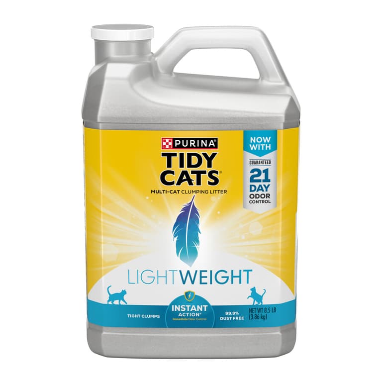 Keep your home smelling fresh and inviting with Purina Tidy Cats LightWeight Instant Action clumping litter for multiple cats. Weighing half as much as the leading clumping litter, it helps simplify litter box maintenance, and with its lightweight and low-dust composition, it's easy to carry and delivers a clean, easy pour. Tight clumps make it easy to clean your litter boxes, and the TidyLock protection helps lock away odors. You want to show your cats just how much you love them, which is why our Tidy Cats LightWeight Instant Action formula goes to work right away to control urine and fecal odors and keep their cozy cat territory fresh and clean. The added Ammonia Blocker prevents ammonia odors from forming for at least two weeks when used as directed. Because it's designed for multiple-cat households, this Tidy Cats odor control litter makes for happy cats, whether you have one litter box or several placed throughout your home.Specifications