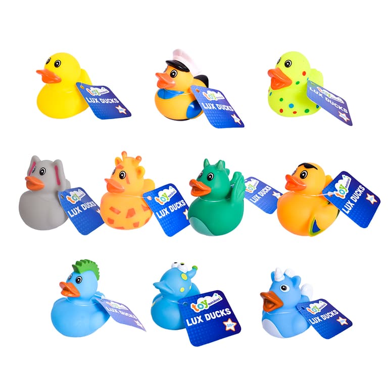 From the classic yellow duck to unique designs like polka dots, boat captain, elephant, and more, there’s a Lux Duck for everyone!; Whether you're splashing around in the bath or adding a charming touch to your space, these delightful rubber ducks are sure to bring smiles wherever go.