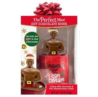 FILLED WITH MINI MARSHMELLOWS, THIS HOLLOW HUNK MAKES A DELICIOUS CUP OF HOT CHOCOLATE IN A MATTER OF MINUTES. SIMPLY DROP HIM INTO HOT MILK FOR A SMOOTH CHOCOLATE INDULGENCE. NOT ONLY IS HE THE PERFECT MAN, HE ALSO MAKES THE PERFECT STOCKING STUFFER OR WHITE ELEPHANT GIFT.Specifications