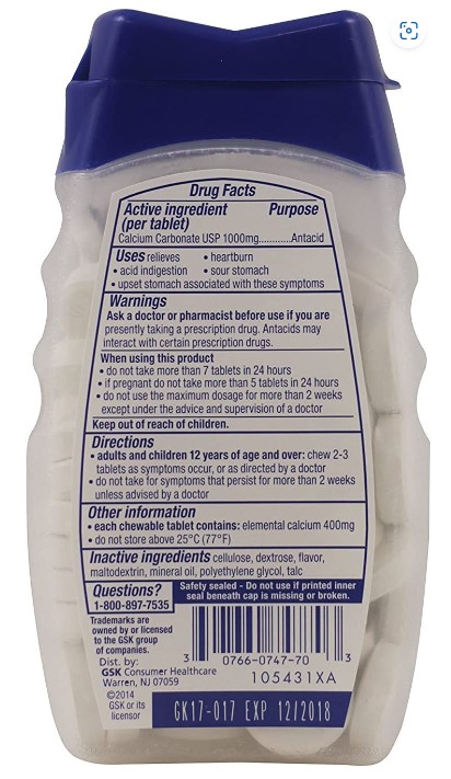 TUMS Ultra Strength 1000 antacid contains DOUBLE the acid neutralizing power per tablet of regular strength TUMS!