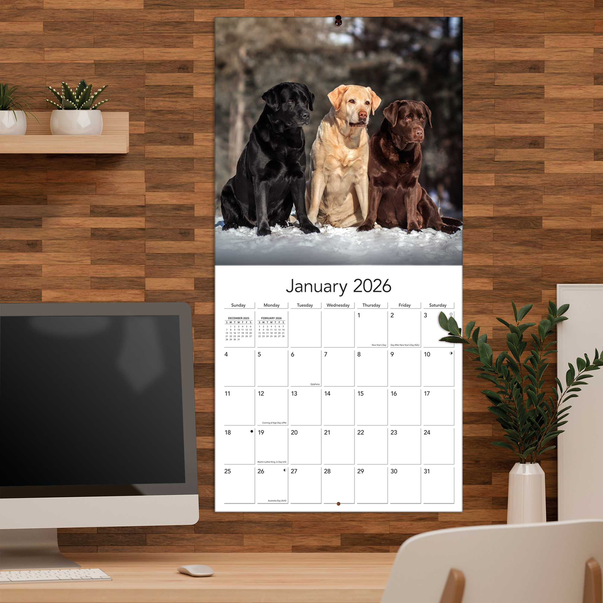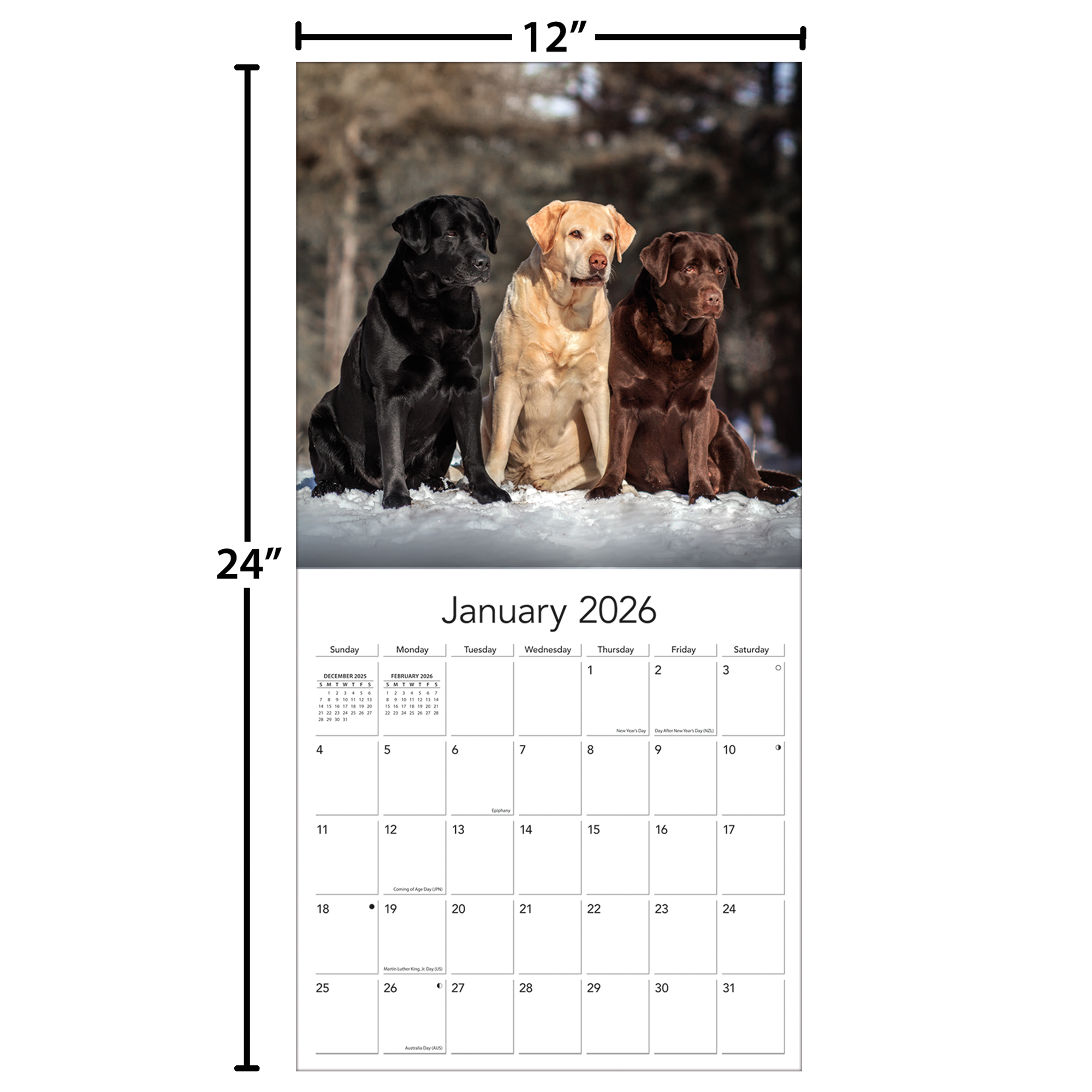 12"w x 24"h (opened); 12-month format (January - December 2026); Bonus page featuring September - December 2025; Calendar is plastic-free & 100% recyclable; Printed with soy ink