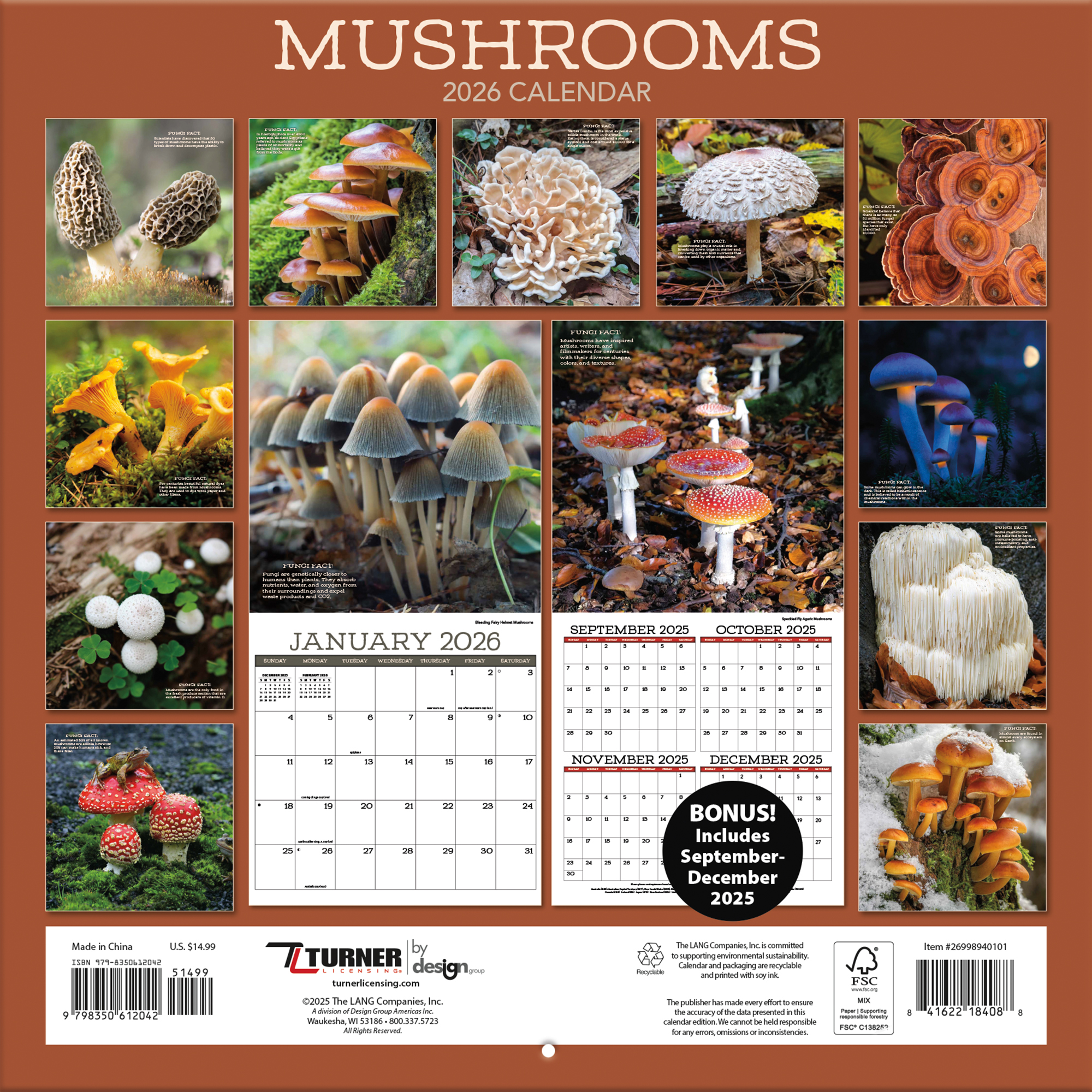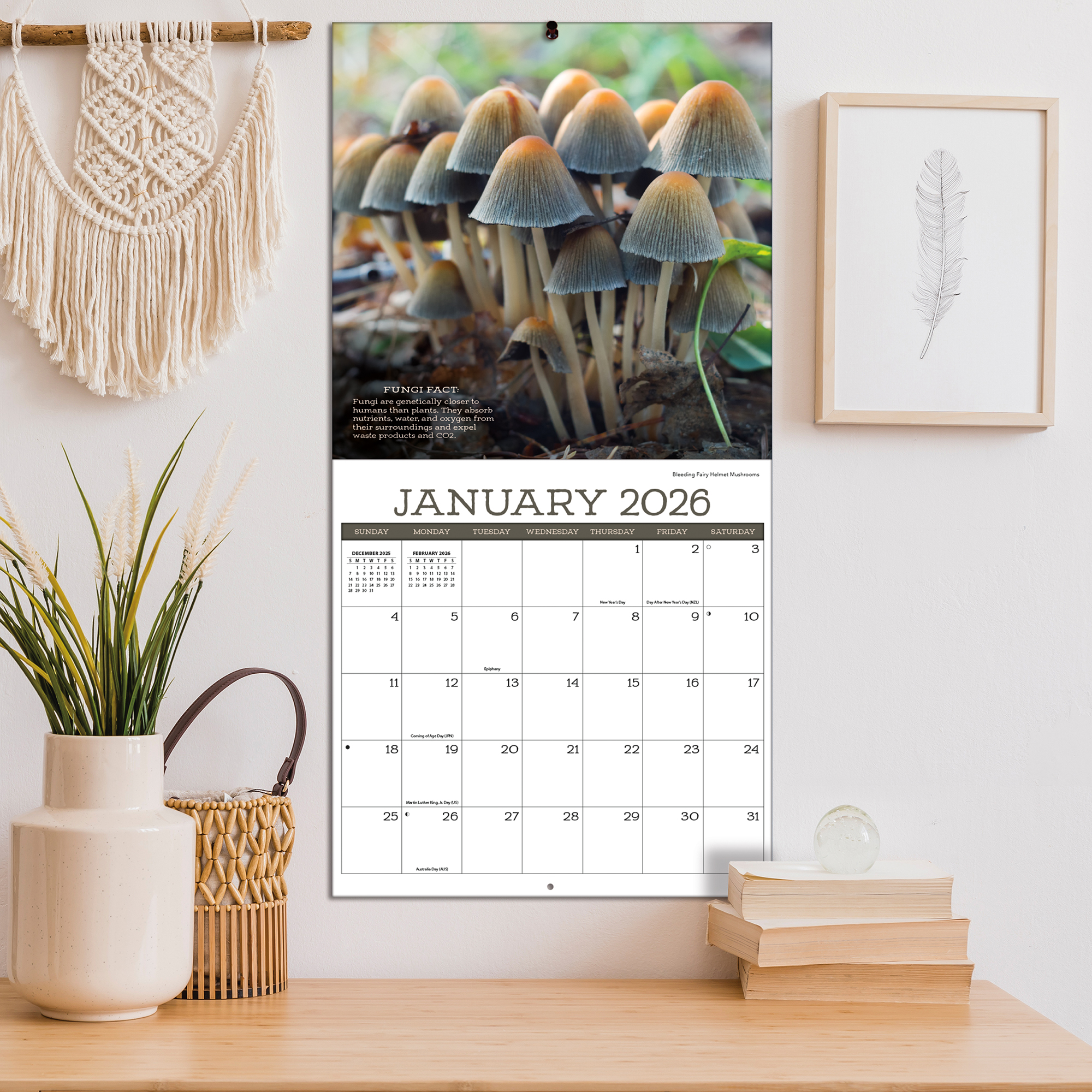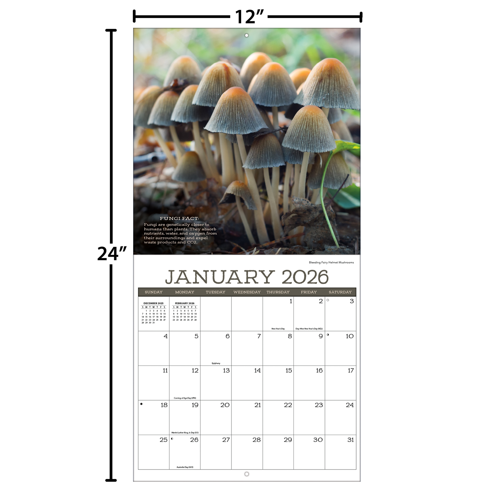 12"w x 24"h (opened); 12-month format (January - December 2026); Bonus page featuring September - December 2025; Calendar is plastic-free & 100% recyclable; Printed with soy ink