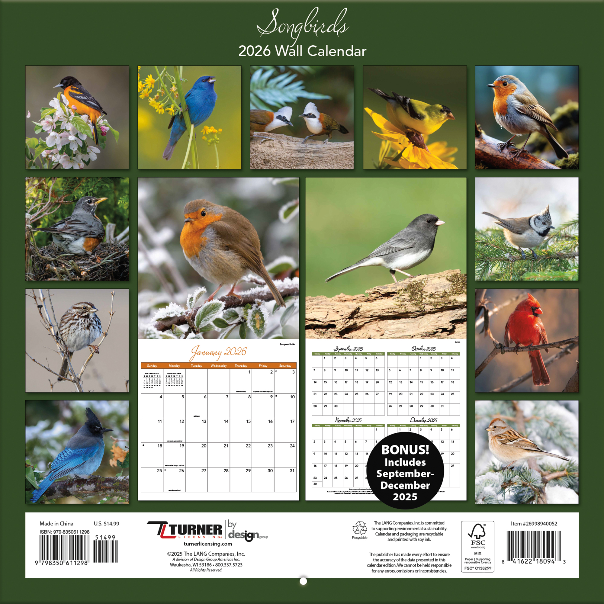 With a reputation for premium-quality calendars featuring exquisite photography and art, Turner Photographic Wall Calendars have something for everyone. All Turner Photographic Wall Calendars are plastic-free and 100% recyclable, printed on responsibly sourced FSC paper using soy ink.Specifications