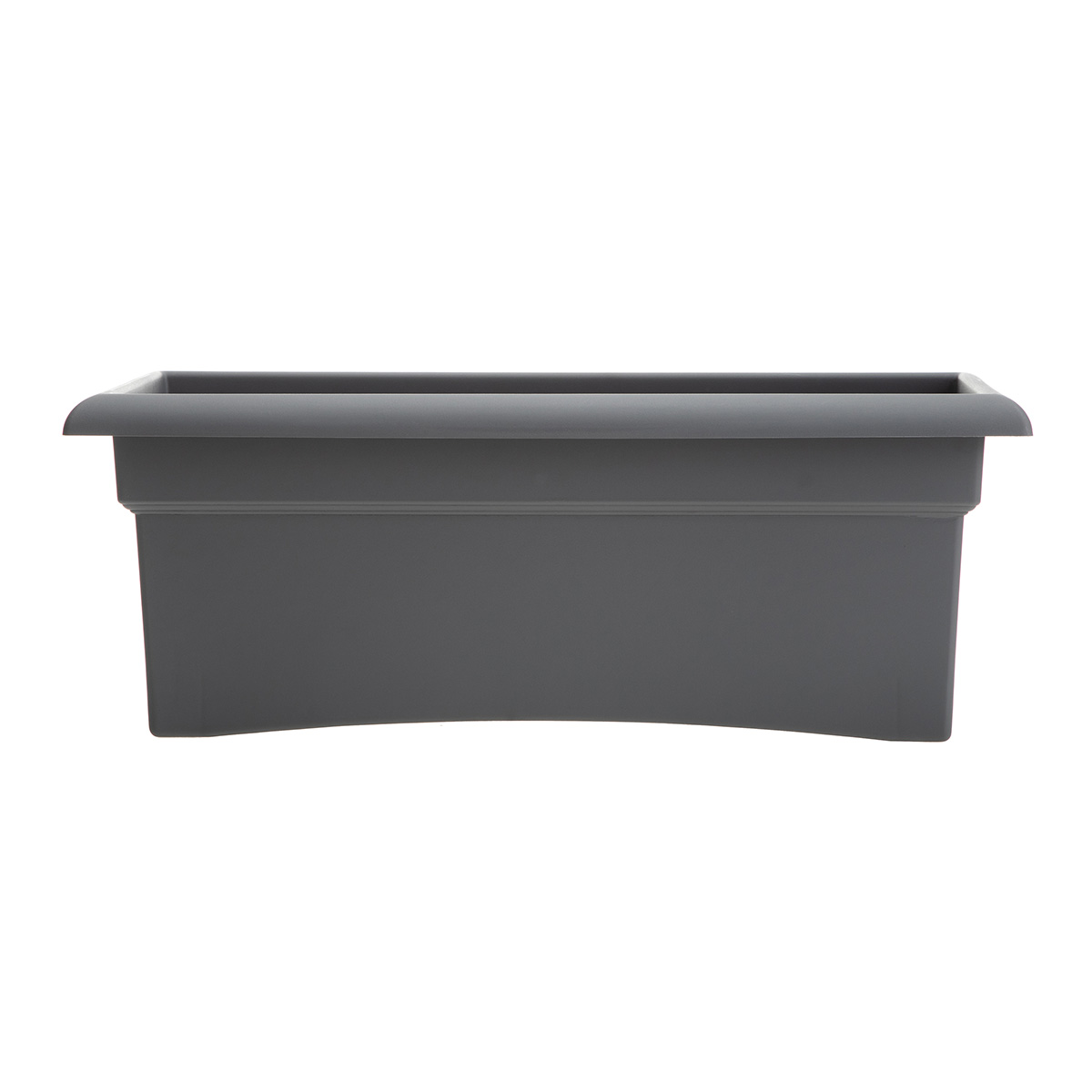 Add an air of fine elegance to your decor with this Bloem Veranda Patio Deck Box Planter. The planter offers a rolled lip wide opening and ample soil space to accommodate several grower pots. The Veranda Patio Planter from Bloem is made from polyethylene plastic, which makes the planter long-lasting. It can be used indoors or outdoors as it is fade resistant. This planter is water, rot, and insect resistant and is available in several colors and sizes. It is made in the USA and flaunts a thick-walled design and optional punch out drainage holes.Specifications