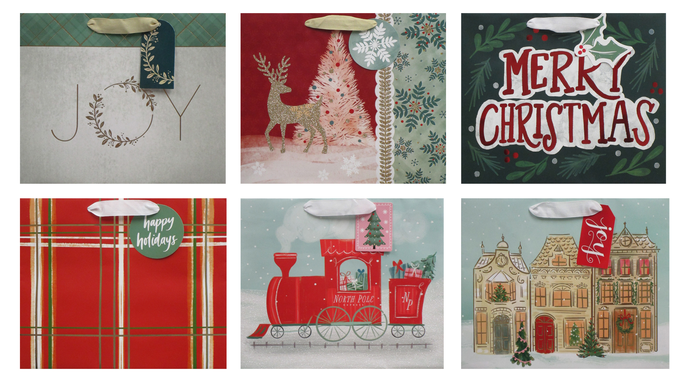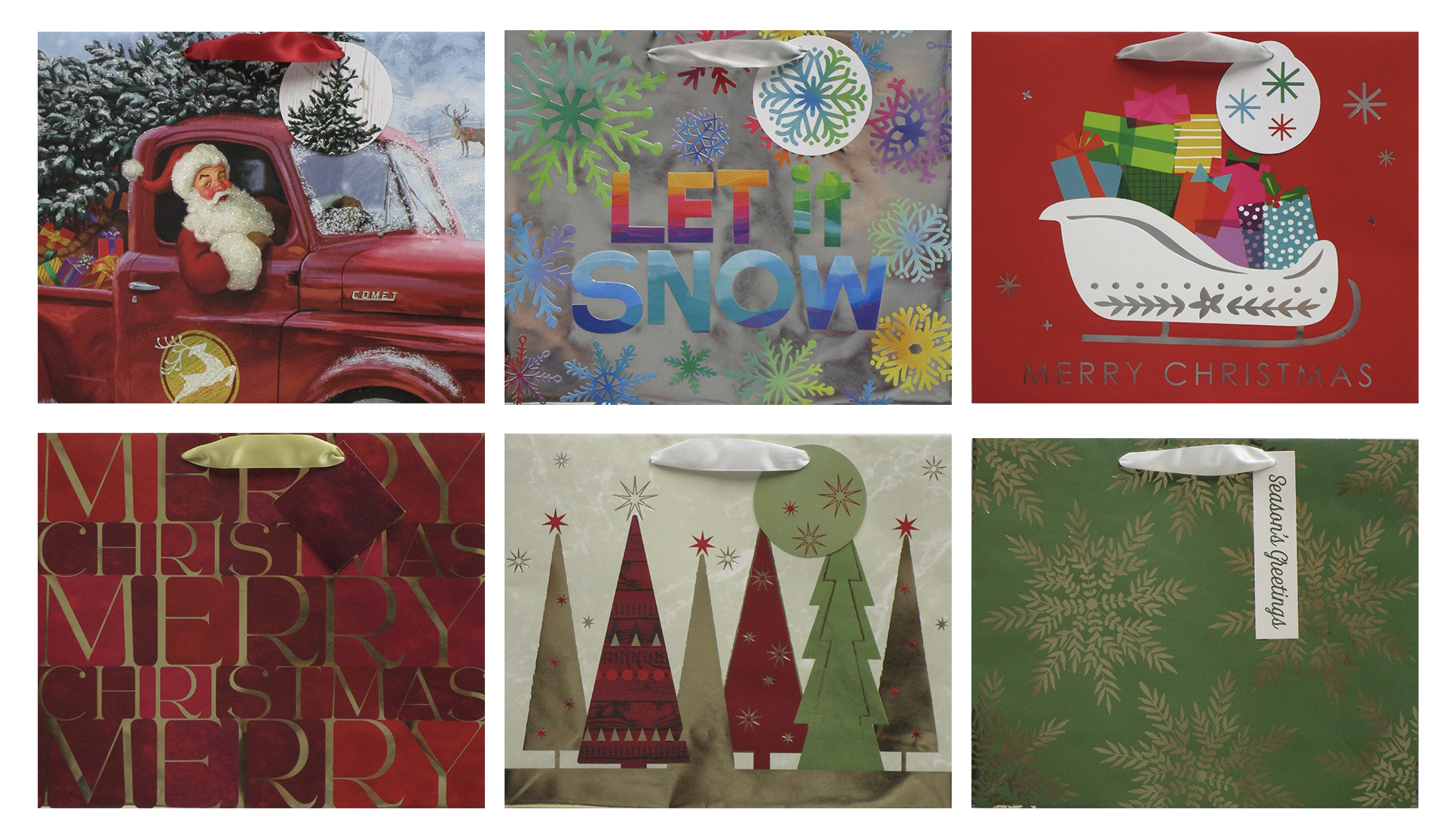 6 ASSORTED HOT STAMP OR GLITTER DESIGNS: 10"H x 4"W x 12"L