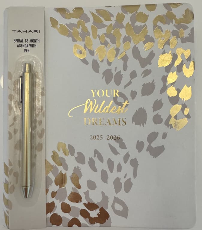This planner keeps you organized for 18 months. This is PVC bound and TAHARI branded. Comes with a pen!Specifications