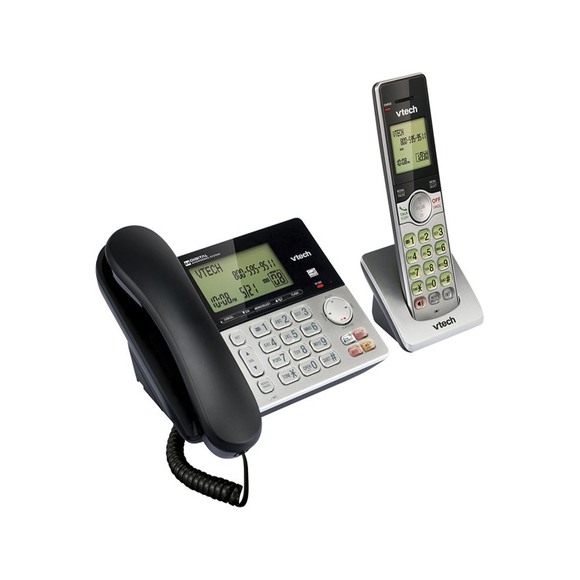 Corded/Cordless phone system with DECT 6.0 digital technology provides a speakerphone that can keep up with your calls. The full duplex handset and base speakerphones increase participation by allowing both ends to speak and be heard at the same time for conversations that are more true to life. Call block allows you to input and/or save up to 20 names and numbers in the call block directory to stop unwanted calls from ringing through. Caller ID on both the handset and base display the name number time and date of incoming calls. Digital answering machine offers up to 22 minutes of recording time to grab calls when you cant. The entire backlit keypad lights up along with the LCD for easier viewing in dim light. Quiet mode allows you to silence the ringer on the handset and base unit immediately or for an extended period of time. Phone system also includes a phonebook directory line power mode any-key answer remote access bilingual voice prompts and more.Specifications
