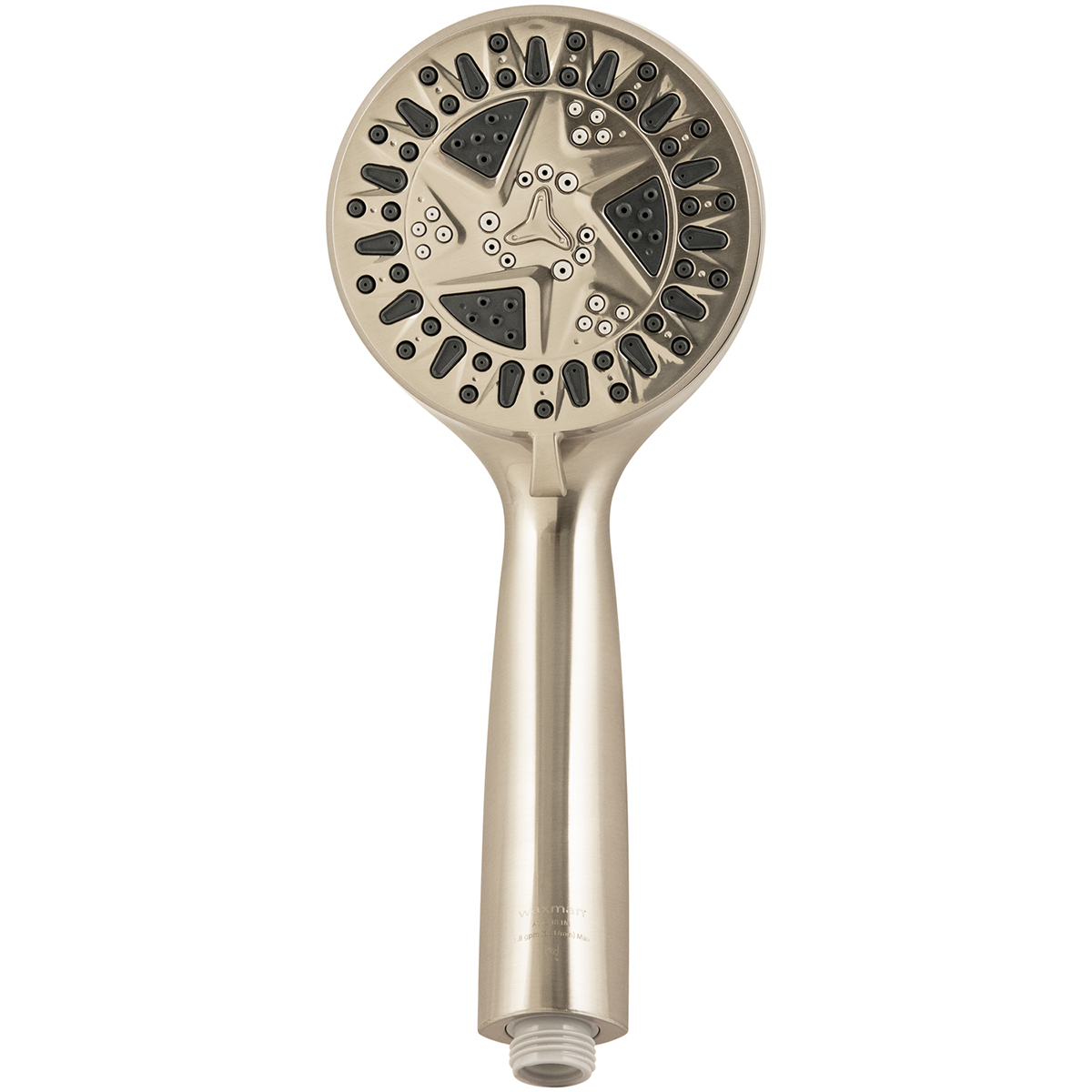 The Waxman SpaMassage Brushed Nickel Handheld Shower offers 6 powerful spray settings, including a unique spray that features 3 rotating water pulses for targeted massage action. SpaMassage also delivers complete water coverage with a 4.25" shower head. The 60" no-kink metal hose is great for reach and accessibility. No tools are required for installing this Shower. This Shower meets WaterSense specification and comes with a Limited Lifetime Warranty.What's Included?Specifications