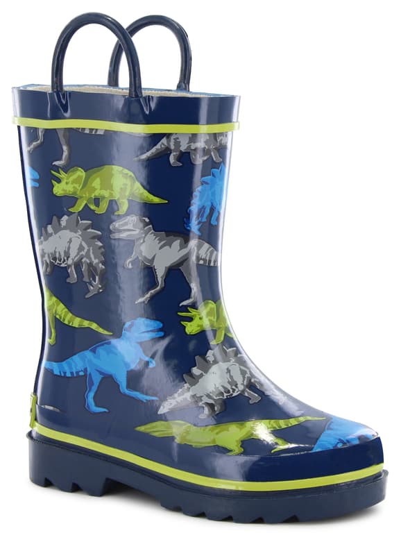 THESE WESTERN CHIEF BOYS RAIN BOOTS HAVE A ROUGH AND TOUGH MONSTER TRUCK PRINT WITH A LARGE TIRE TREAD BACKGROUND, AND A STRIPE OF GREEN TRIM AROUND THE TOP AND BOTTOM TO FRAME THIS AWESOME BOOT. WATERPROOF AND EASY TO WIPE CLEAN AFTER A DAY OF RACING THROUGH PUDDLES.Specifications