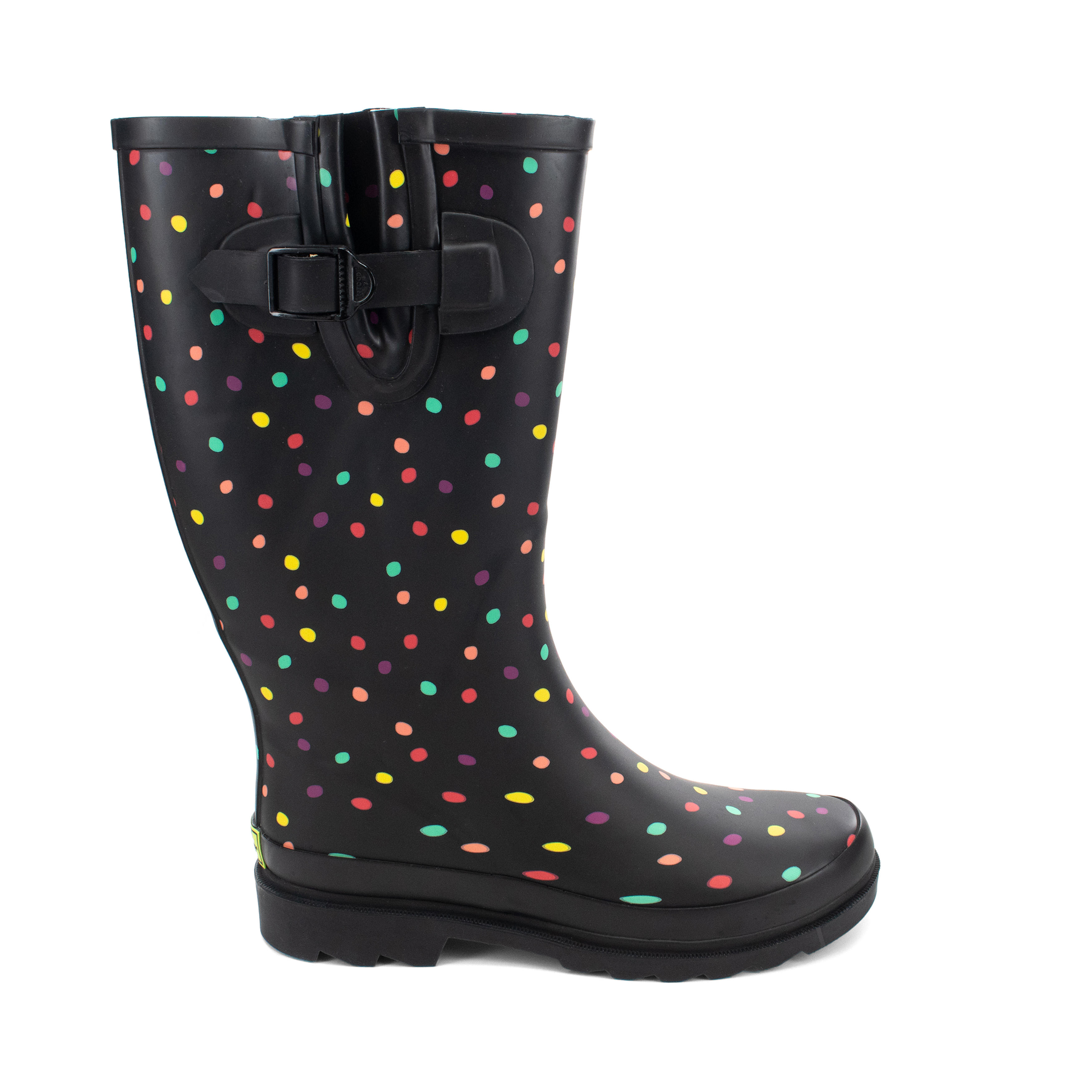 MADE FROM WATERPROOF HIGH-QUALITY RUBBER, THESE PRINTED RAIN BOOTS FEATURE A SOFT POLYESTER ANDN COTTON LINING. THE REMOVABLE EVA INSOLE AND RUBBER LUG OUTSOLE PROVIDE LASTING SUPPORT AND TRACTION, WHILE THE LATERAL GUSSET WITH AN ADJUSTABLE BUCKLE ENSURES A PERFECT FIT.Specifications