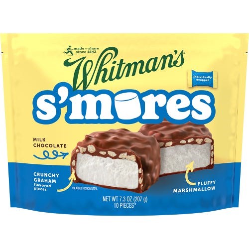 WHITMAN'S S'Mores combine fluffy marshmallow, crunchy graham flavored pieces and smooth milk chocolate for a taste you will FALL in love with!Specifications