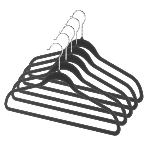 Whitmor's Spacemaker Flocked Suit Hangers feature a thin design to add more room in your closet to hang clothes. The hangers are flocked in a velvet-like material so clothes won't fall off. Each hanger is black in color and each set comes in a 5-Pack. The Space maker hangers feature a steel hanger hook. Whitmor is a 4th generation family-owned and operated business. Since 1946, Whitmor has been dedicated to bringing organization home by creating products that simplify everyday life. Ensuring that those products are built with integrity, value, and innovation is our commitment to you. And our promise is that we will always be here for you should you ever need us as we stand behind our product 100%.Specifications