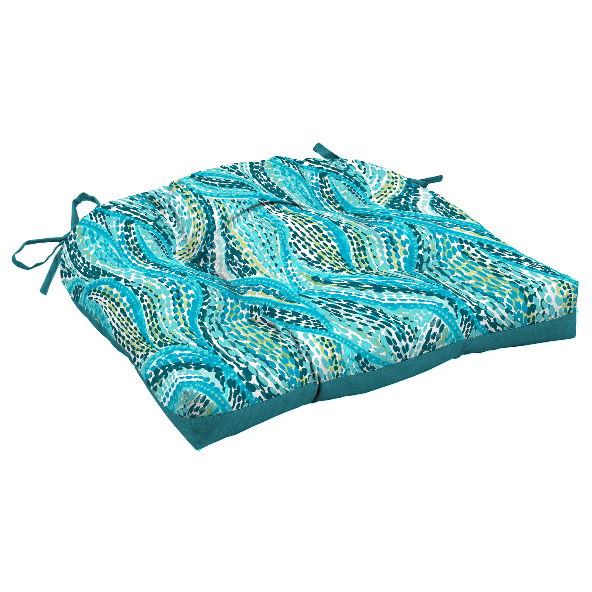 The Arden Selections Outdoor Plush Blowfill Wicker Seat Cushion is made with soft polyfiber fill and long-lasting outdoor polyester fabric with PFAS-Free C0 treatment. Creating an ultra-comfortable outdoor wicker cushion that is also eco-friendly and Skin-safe for your family. This cushion can be used on wicker chairs, dining chairs, or rocking chairs. This outdoor chair cushion measures 20in W x 18 in L x 5 in T. The 100% printed polyester outdoor fabric resists fading, so your patio cushion looks vibrant for longer. Skin-safe C0 water protection helps your wicker seat pad cushion withstand continued outdoor use, while also making cleaning easy with just soap and water for low-maintenance upkeep. Two sets of ties make sure your outdoor seat cushion stays firmly in place, while tufts add a decorative touch. Inside this outdoor chair cushion is 100% polyfiber blowfill to help it retain shape and provide long-lasting comfort during outdoor use. Made from 100% recycled plastic, the polyfiber fill provides an environmentally friendly and durable option for your backyard patio. Although this patio cushion is both water and UV-resistant, we recommend bringing it indoors when it rains or when not in use to preserve its lifespan and keep it looking beautiful.Specifications