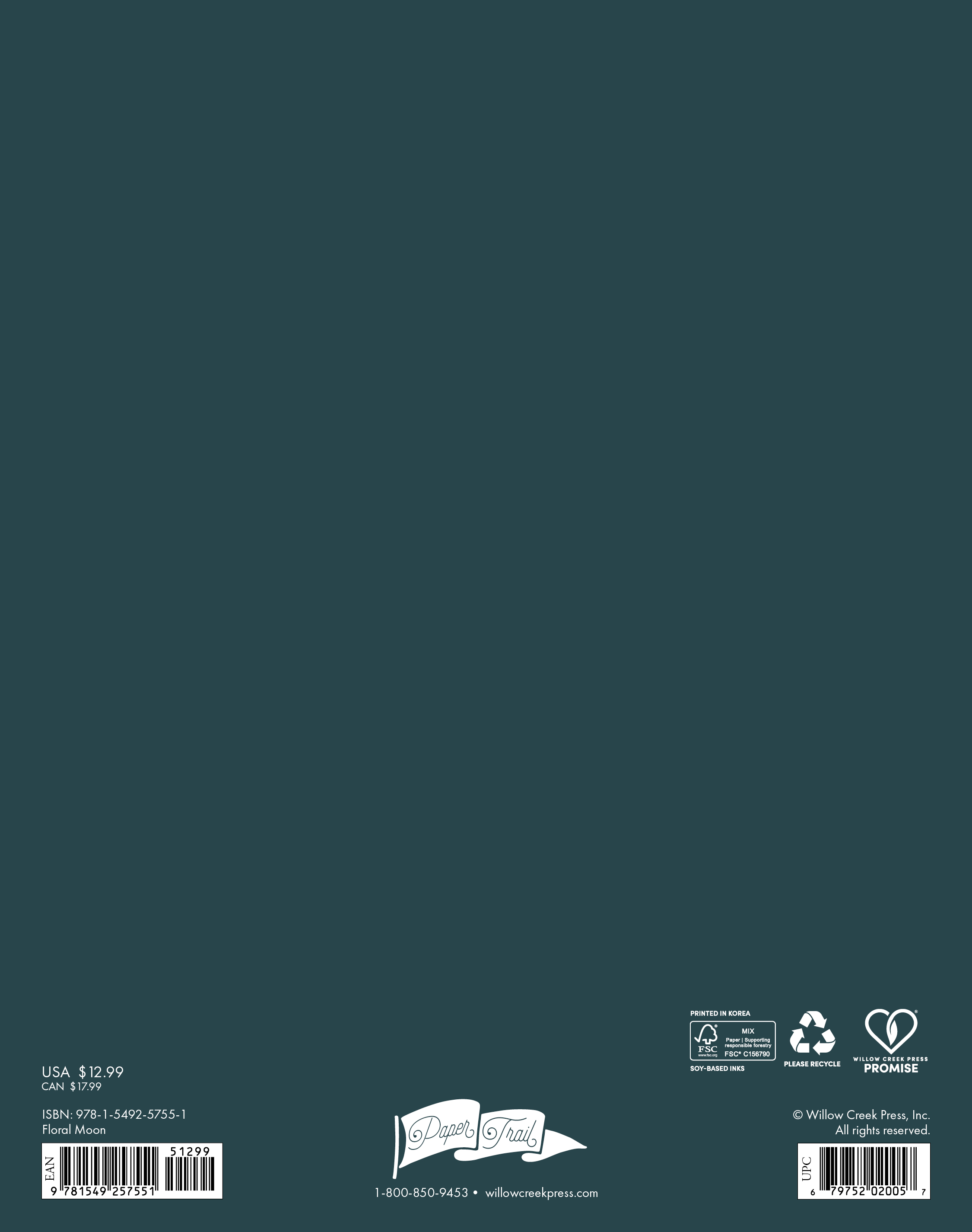 PLAN BY NIGHT Watch your wildest dreams take root in the glow of the moonlit sky with the Floral Moon Monthly Planner. The crescent moon peeks through ancient willows, illuminating a path to success, making every day an opportunity to shine brighter than the stars in the year ahead from January to December 2026.Specifications