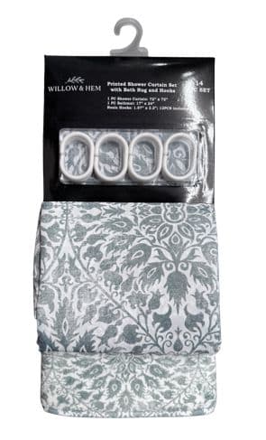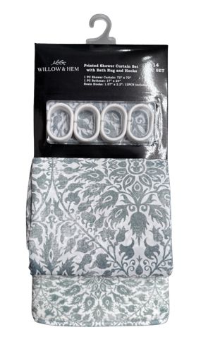 Featuring a waterproof design, the shower curtain and liner set effectively prevent water from escaping the shower area. This helps keep your bathroom floor dry and minimizes water damage. Set includes 12 hooks and a 17 x 24 in memory foam bathmat.Specifications