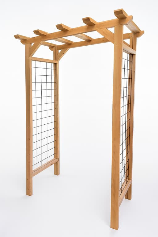 BEAUTIFUL GARDEN ARBOR WITH WIRE SIDES AND IS 4 FEET WIDE COULD BE PERFECT AS AM ENTRY THROUGH A 4FT GATE, OR IN A GARDEN BED, MADE FROM CEDAR WOOD AND 10GA BLACK WIRESpecifications